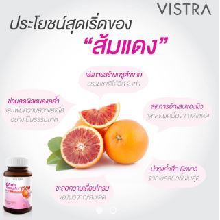 VISTRA Gluta Complex 1000 plus red orange extract 1 ขวด ขนาด 30 เม็ด [y1954]