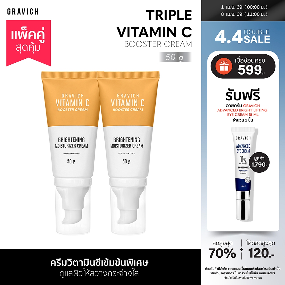 [แพ็คคู่] Gravich Triple Vitamin C Booster Cream 50 g มอยส์เจอร์ครีม วิตามินซี 3 อนุพันธ์ เข้มข้น
