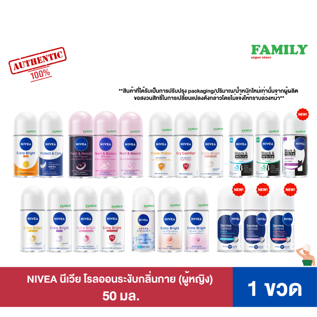 NIVEA นีเวีย โรลออนระงับกลิ่นกาย(ผู้หญิง) รวมทุกสูตร 50ml [ราคา 1 ขวด]*
