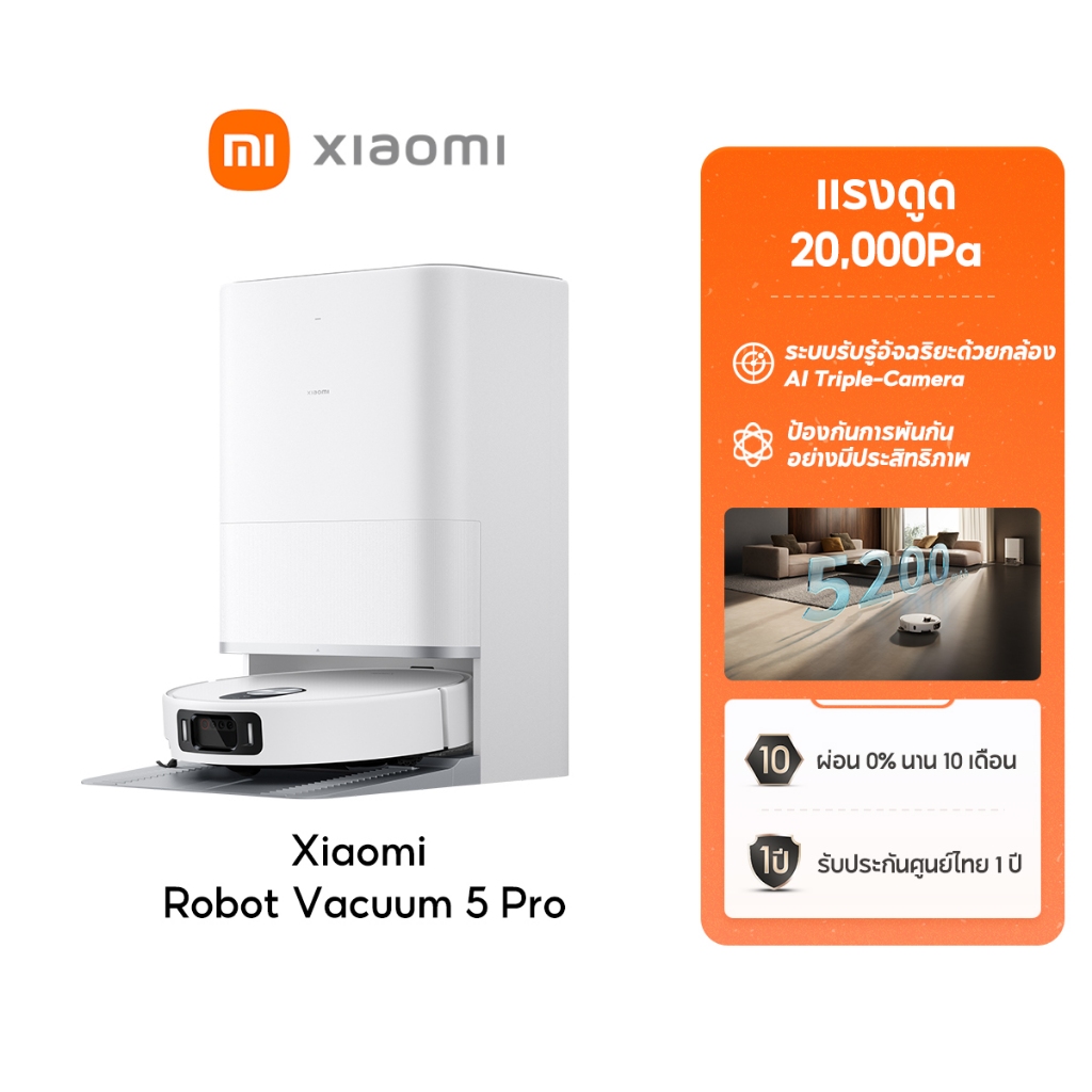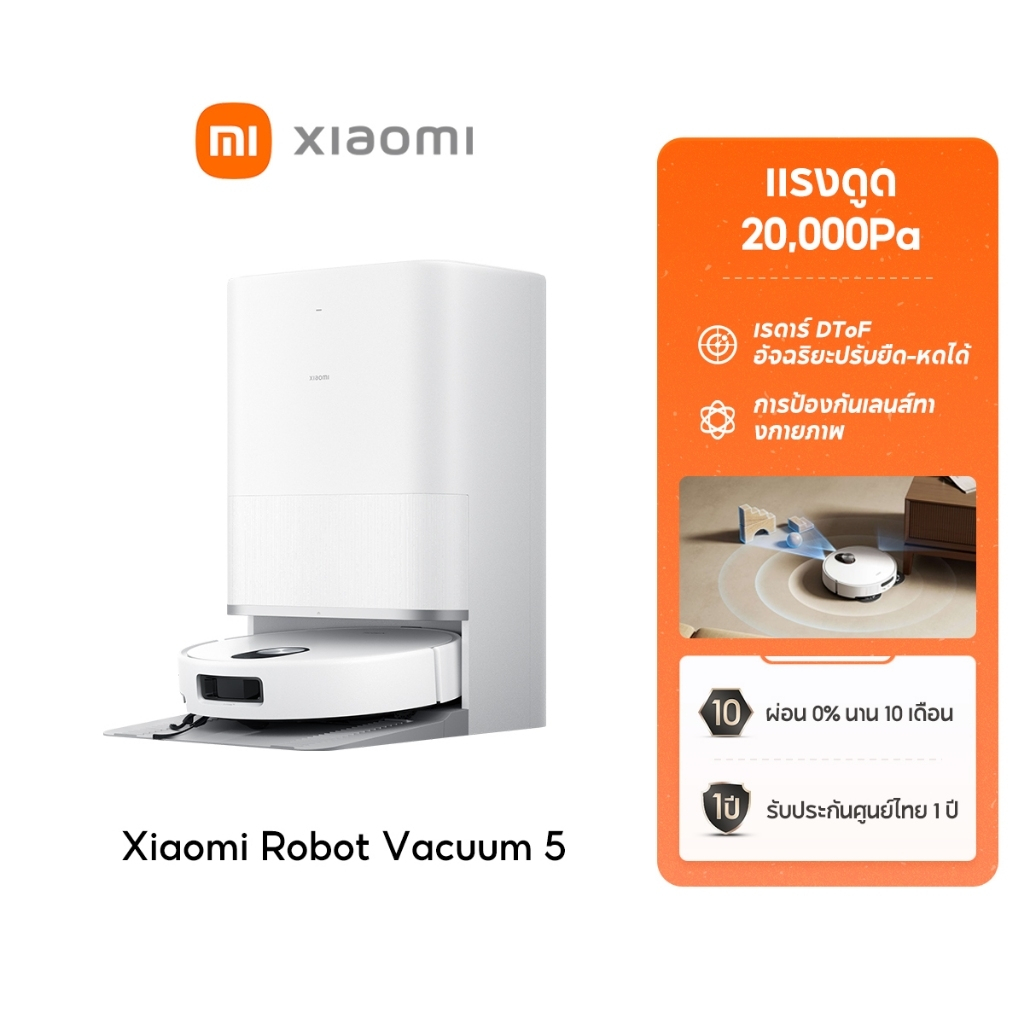 [New] Xiaomi Robot Vacuum 5 Pro 20,000Pa ระบบรับรู้อัจฉริยะด้วยกล้อง AI Triple-Camera เรดาร์ DToF อัจฉริยะปรับยืด-หดได้