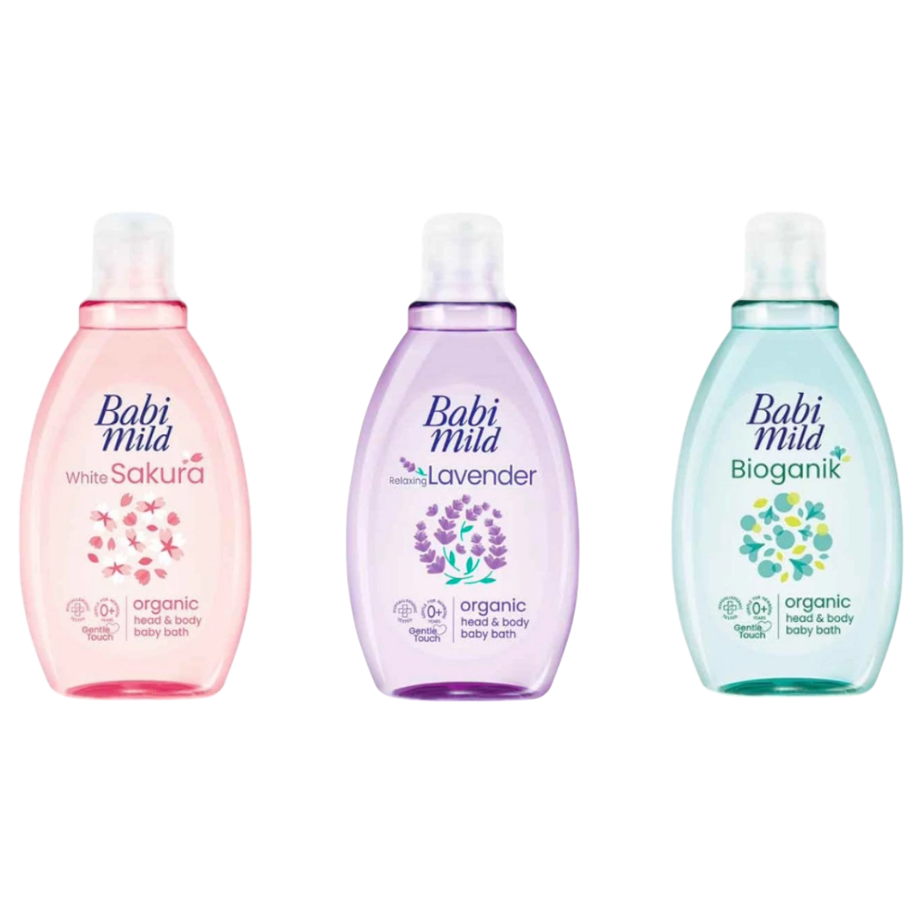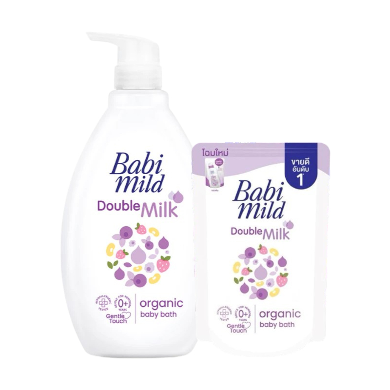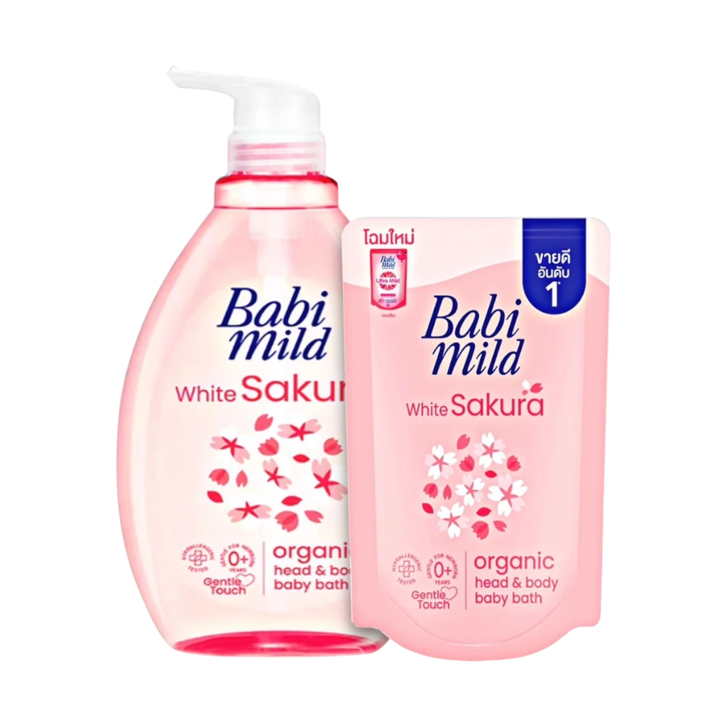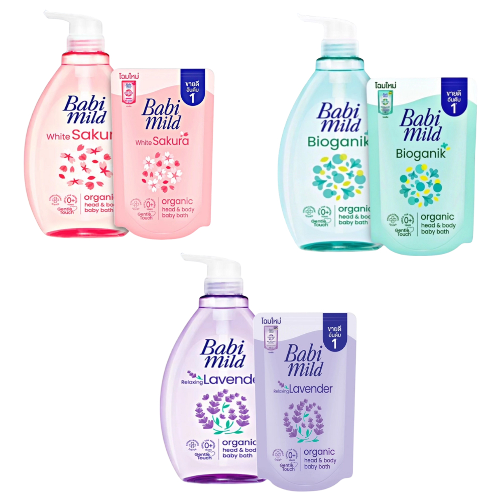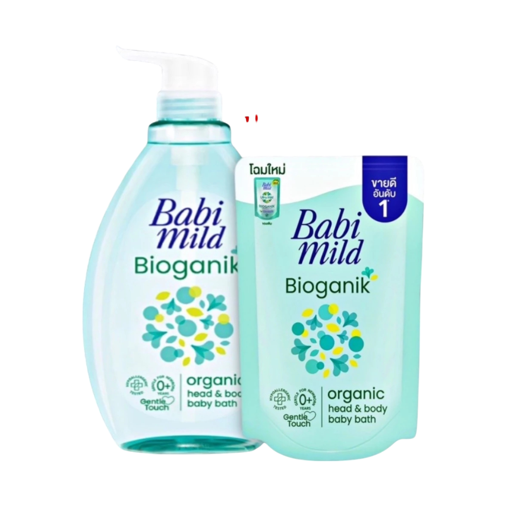 Babi Mild Organic Head & Body baby bath เบบี้มายด์ ออร์แกนิก เฮด & บอดี้ เบบี้ บาธ สบู่เหลวอาบน้ำเด็ก 180/800+350 มล.