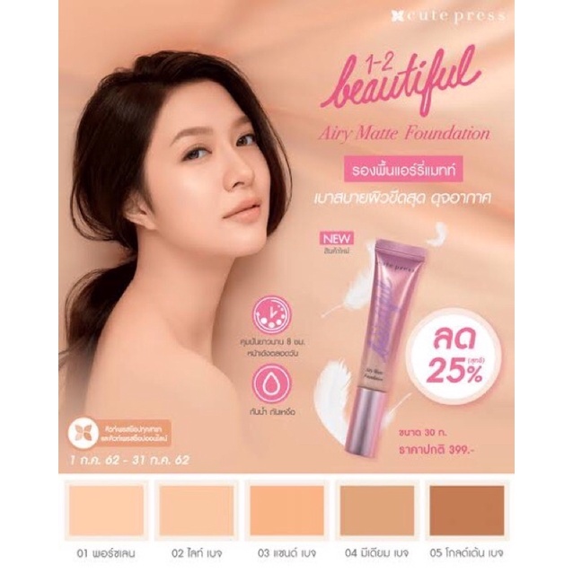 Cute Press ครีมรองพื้น 1-2 Beautiful Airy Matte Foundation ขนาด 30ml.