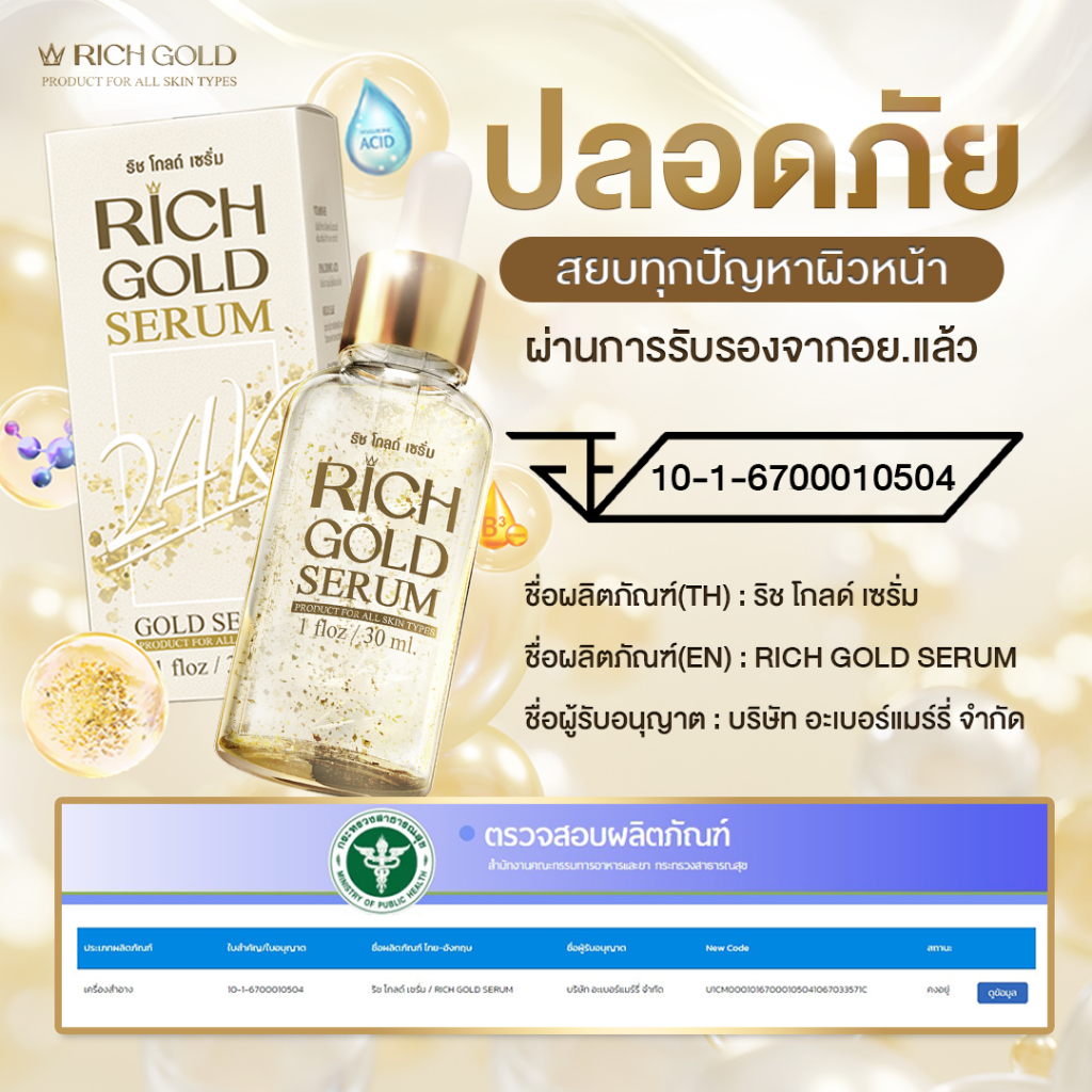 [ส่งฟรี] ริช โกลด์ เซรั่ม 3 ขวด - Rich Gold Serum ส่งตรงจากโรงงาน