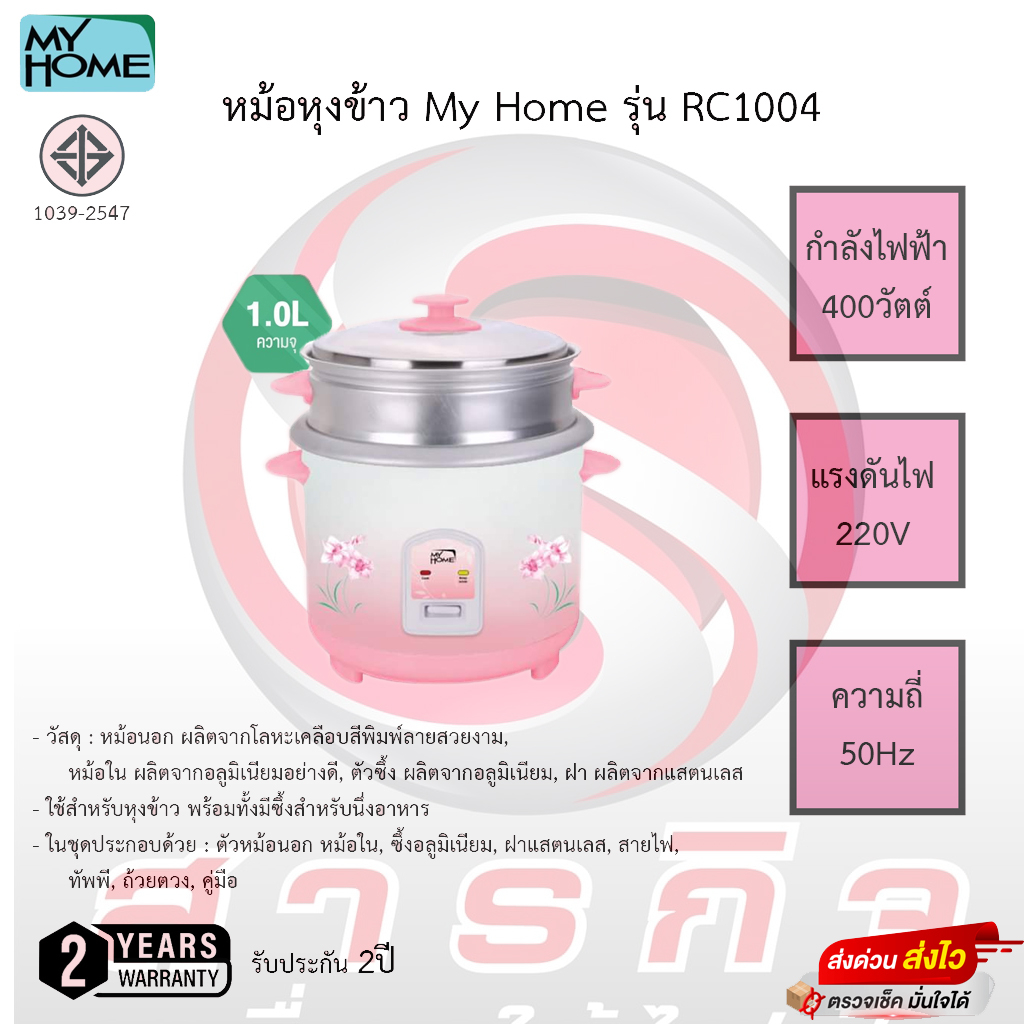 My Home หม้อหุงข้าวพร้อมชั้นนึ่ง ขนาด 1 ลิตร รุ่น RC1004 รับประกัน 2ปี