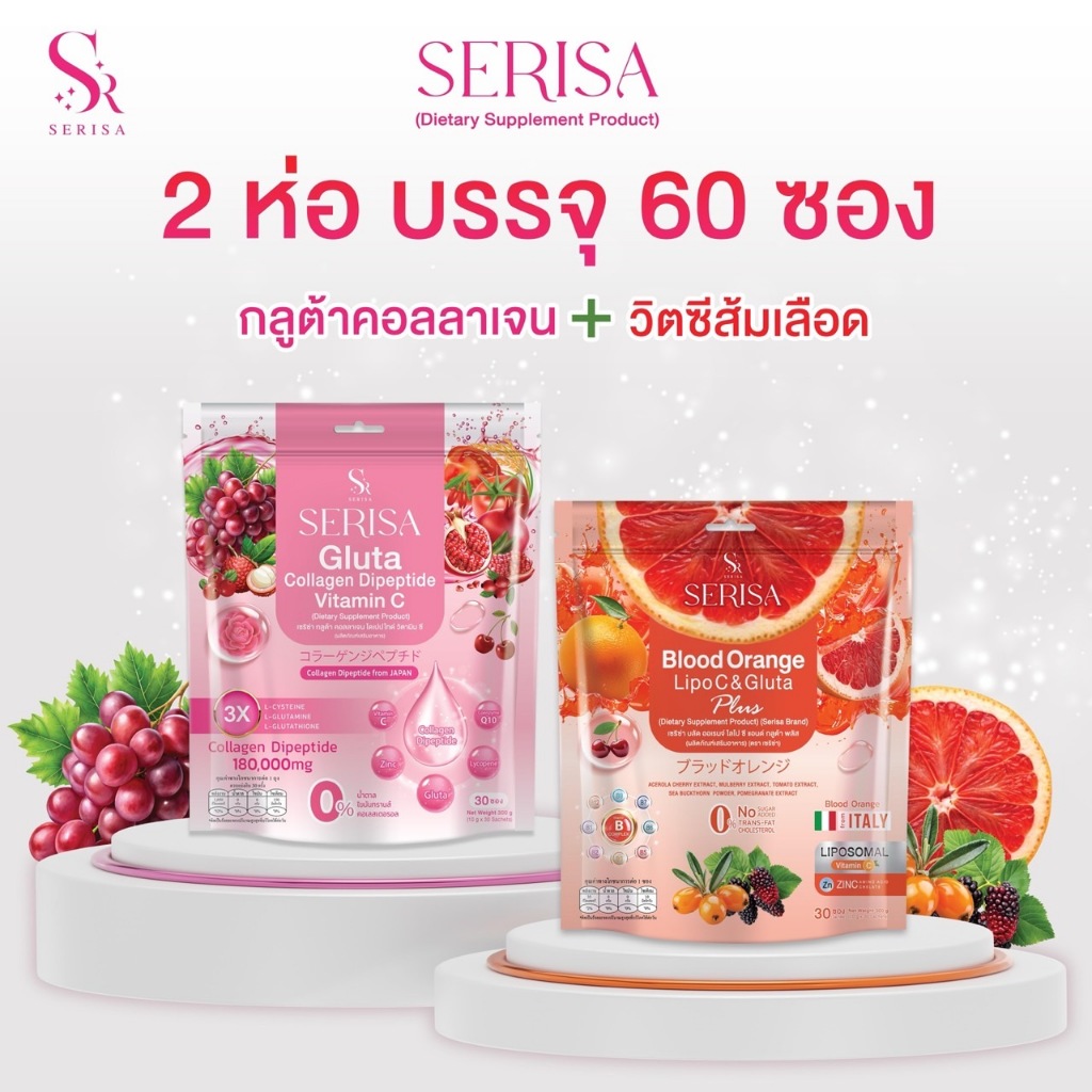 โปรคู่ น้ำชงเซริซ่า วิตซีส้มเลือด+กลูต้าคอลลาเจน