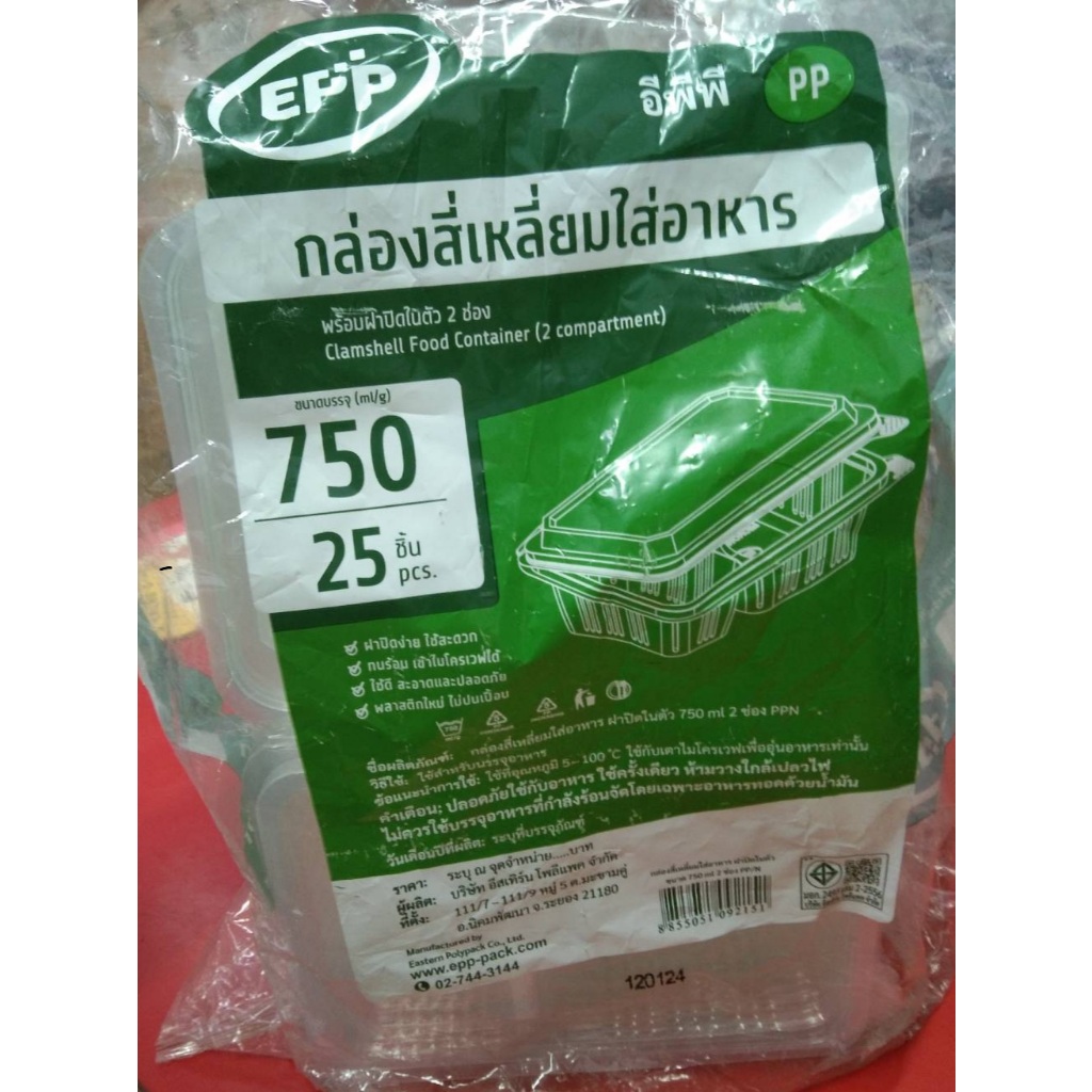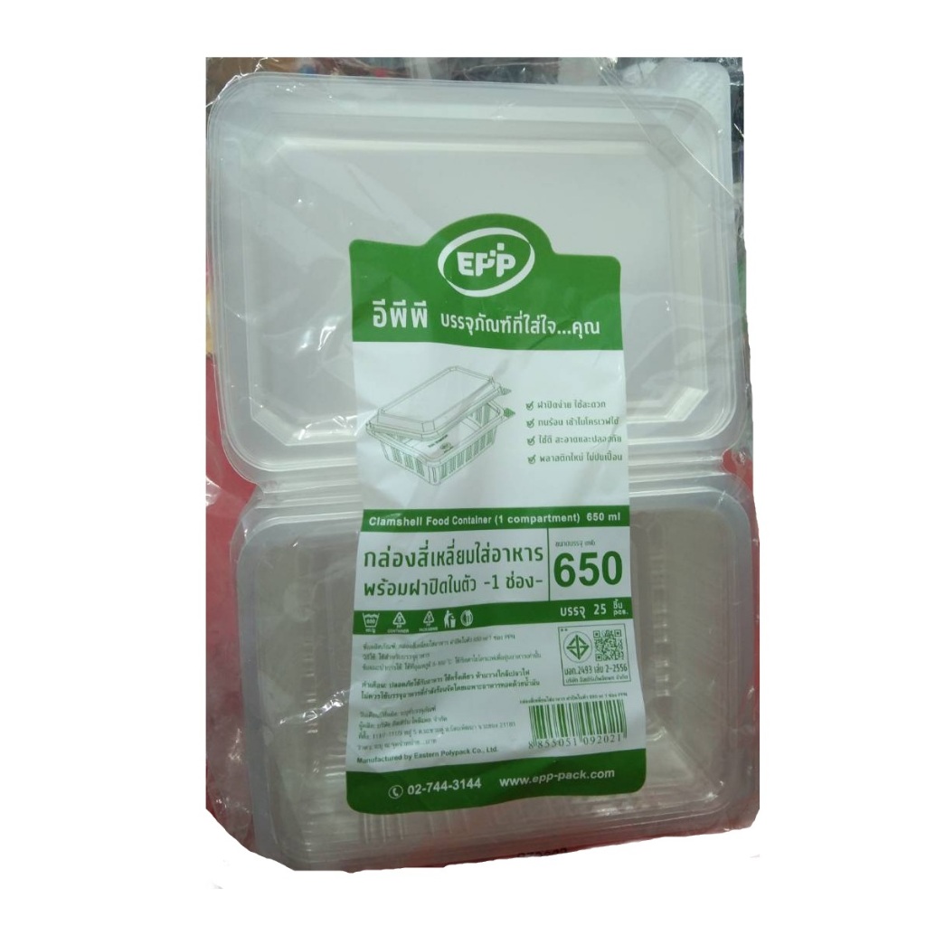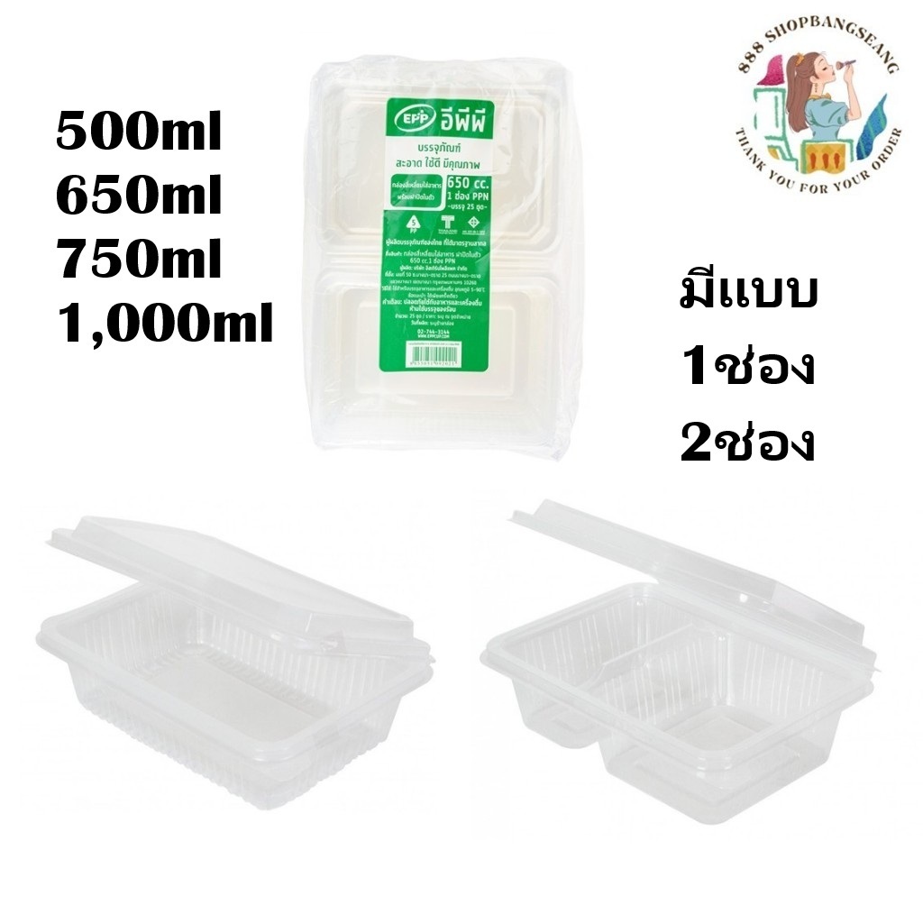 กล่องสี่เหลี่ยมใส่อาหาร 1ช่อง,2ช่อง 650 ml,750ml EPP ฝาในตัว แพ็ค/25ใบ