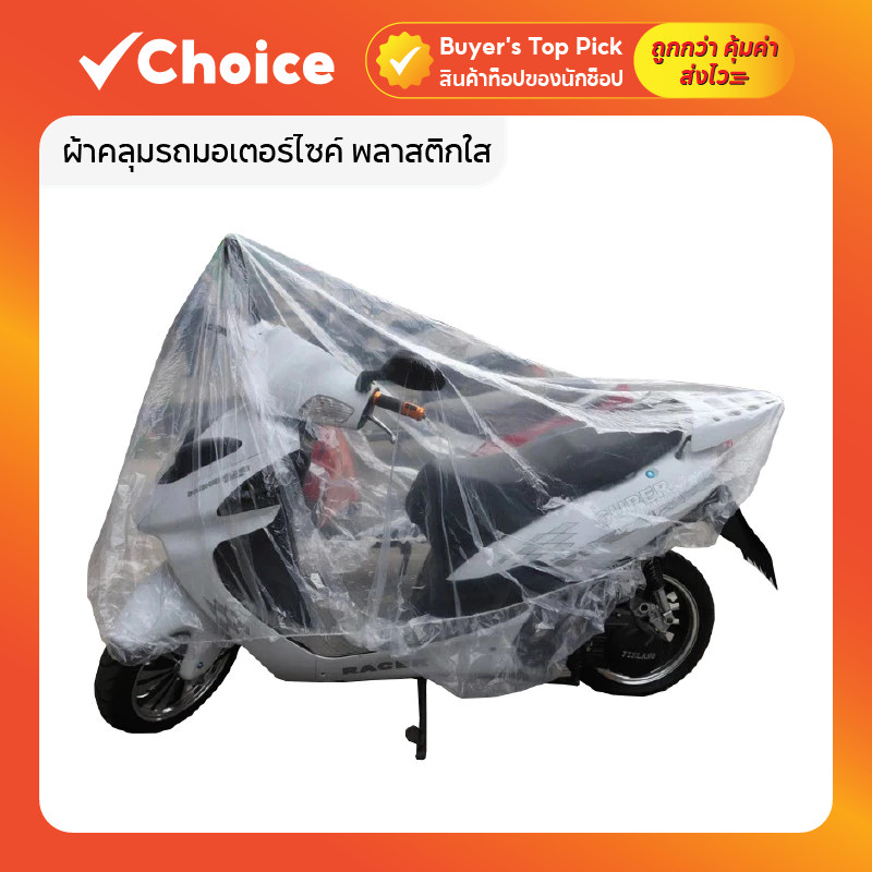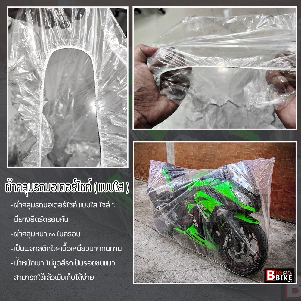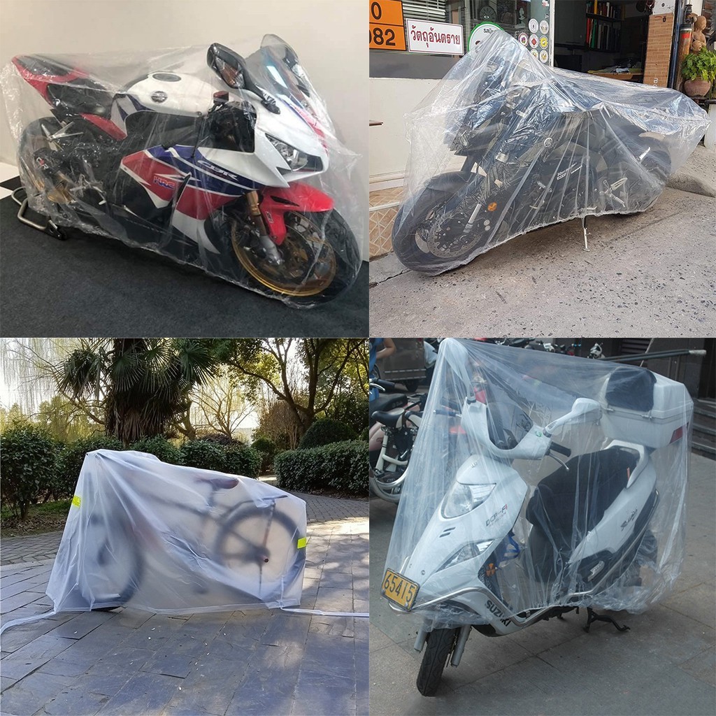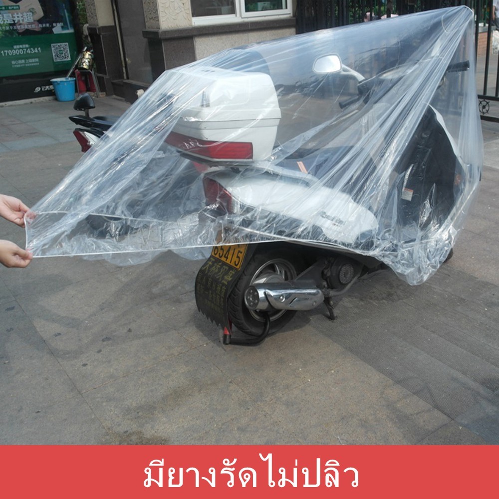 ผ้าคลุมรถมอเตอร์ไซค์ พลาสติกใส กันฝุ่น กันฝน ขอบยางรัด (Size M / L)