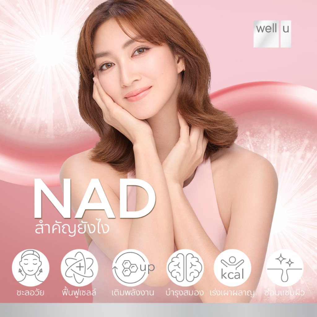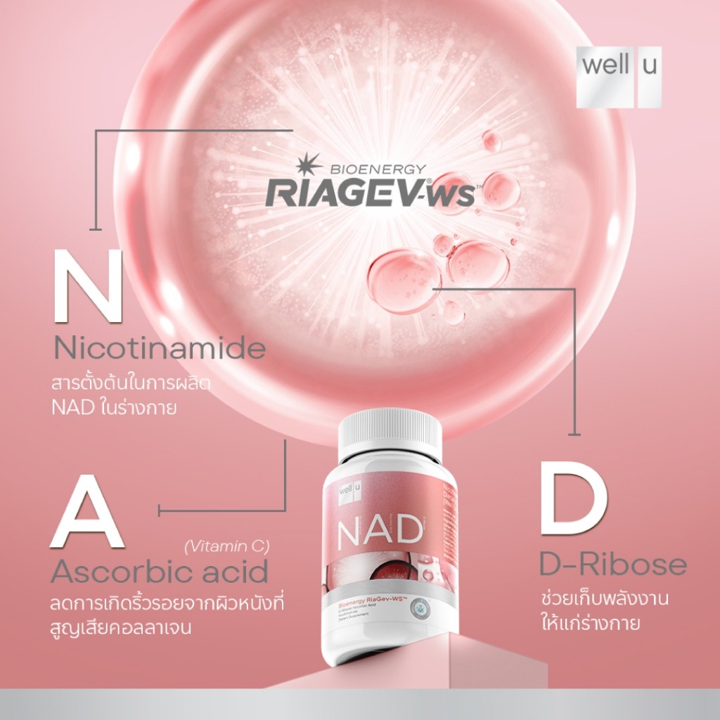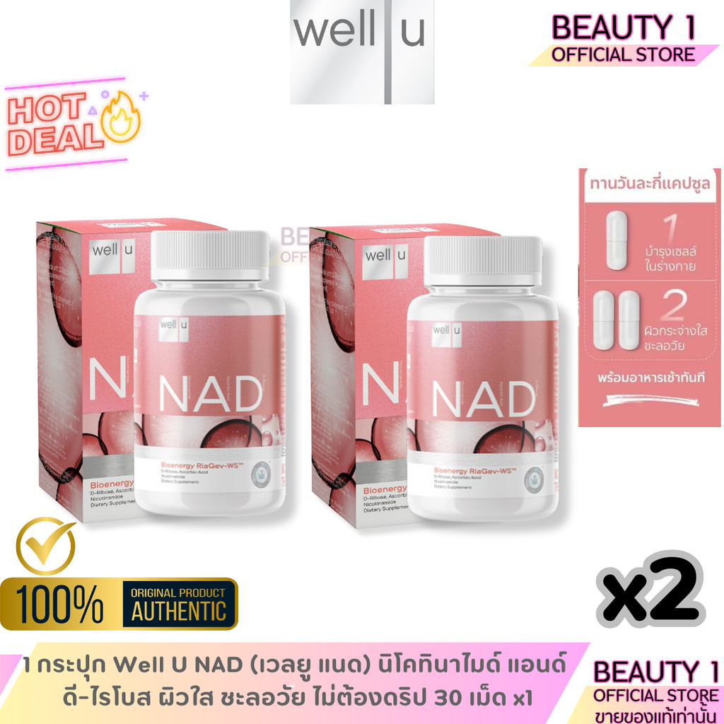 1 กระปุก Well U NAD (เวลยู แนด) นิโคทินาไมด์ แอนด์ ดี-ไรโบส ผิวใส ชะลอวัย ไม่ต้องดริป 30 เม็ด x1