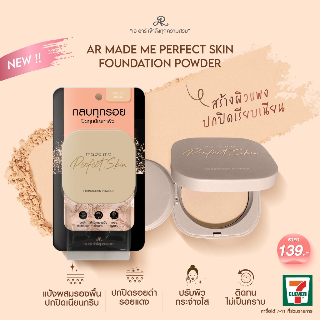 (1 ชิ้น)AR Made Me Perfect Skin Foundation Powder เออาร์ เมด มี แป้งผิวแพง ปาดปุ๊บเนียนปั๊บ(12.5 g.)
