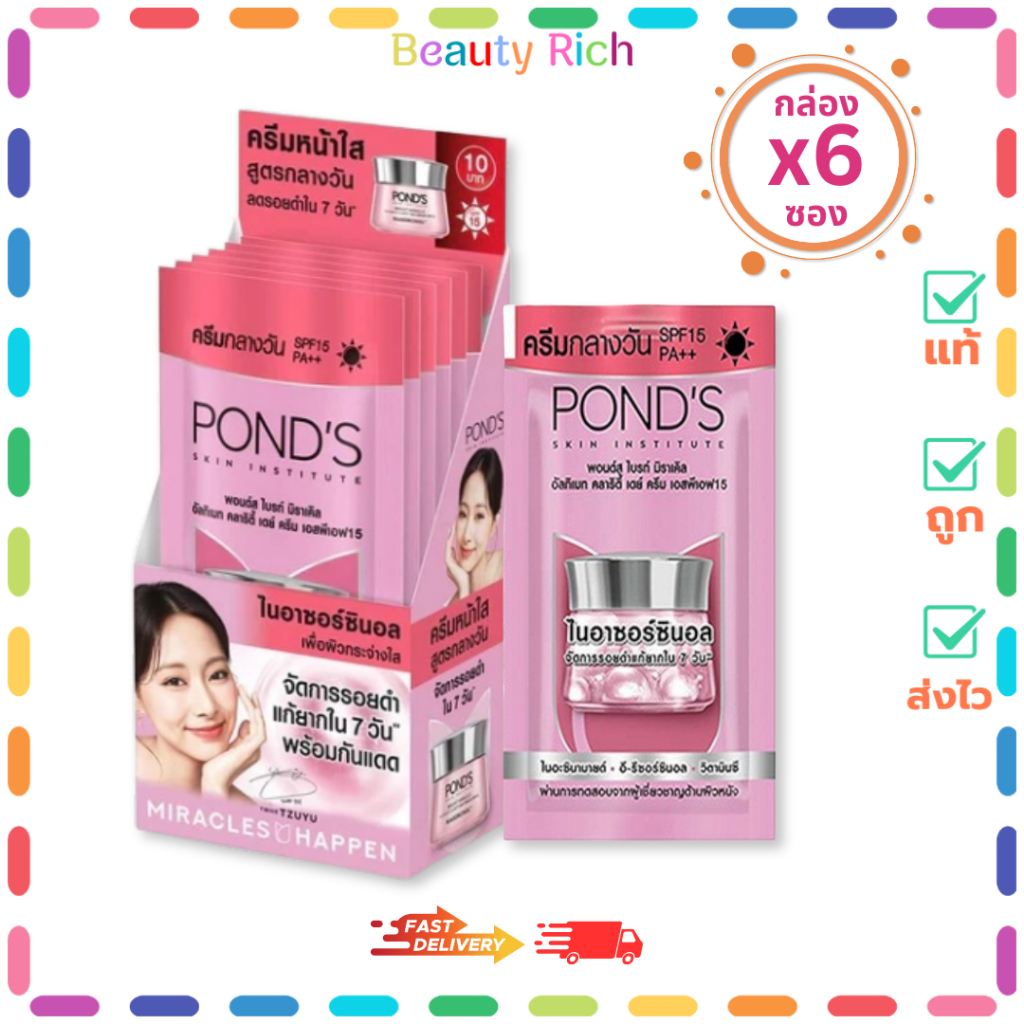 (กล่อง 6 ซอง) Pond's (ซองฉีก)พอนด์ส ไบรท์ มิราเคิล อัลติเมท คลาริตี้ สูตรกลางวัน (ปริมาณ 5 กรัม)