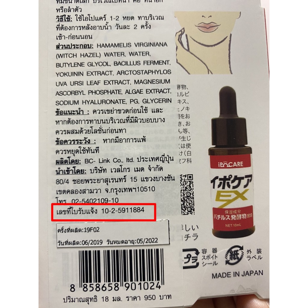ฉลากไทย จากญี่ปุ่น Ipocare ex ไอโปรแคร์ อีเอ็กซ์ 18 ซีซี กำจัดกระ ติ่งเนื้อไฝ หูด #2936