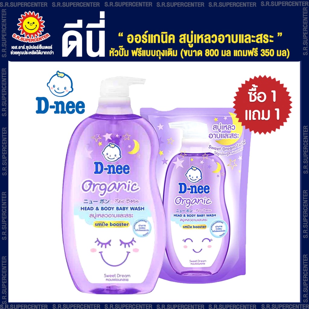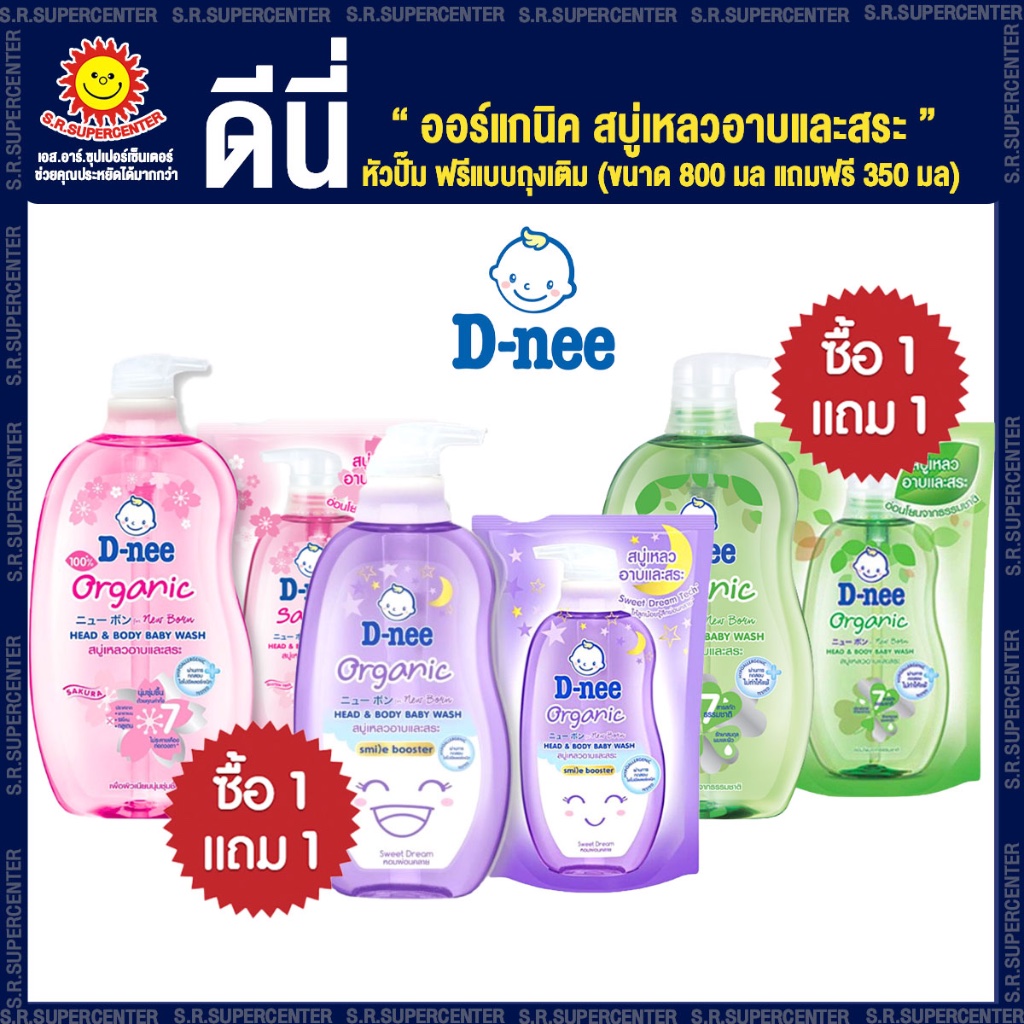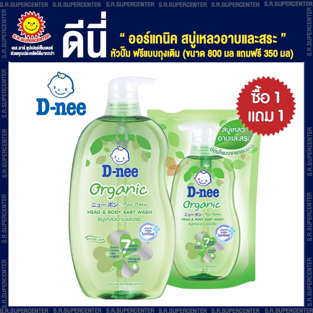[ 1 แถม 1 ] D-nee ดีนี่ ออร์แกนิค สบู่เหลวอาบและสระ หัวปั๊ม+ฟรีแบบถุงเติม (ขนาด 800 มล ฟรี 350 มล)