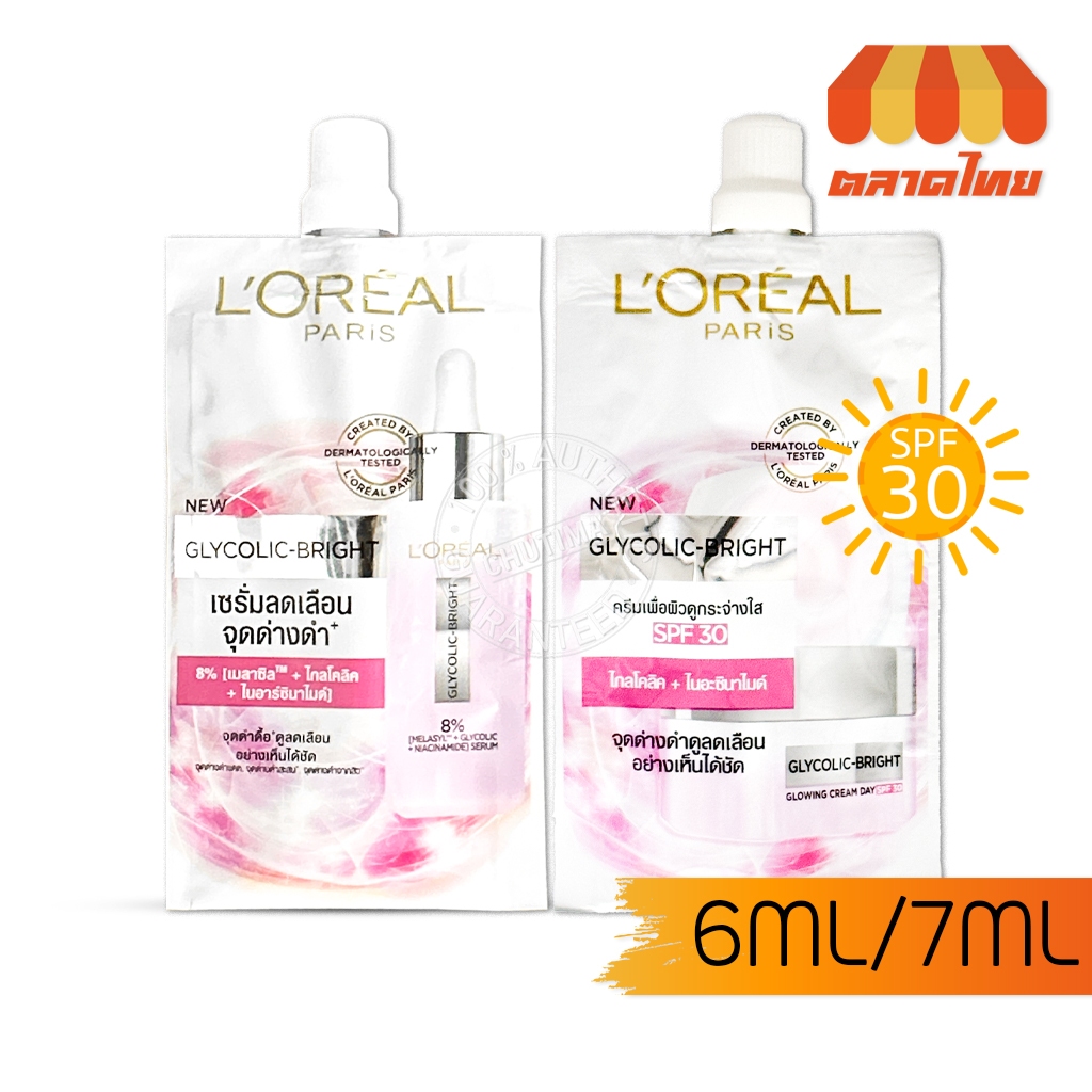 ครีมซอง ลอรีอัล ปารีส ไกลโคลิค-ไบรท์ โกลว์อิ้ง ครีม / เซรั่ม L'Oreal Paris Glycolic Bright 6/7 ml.