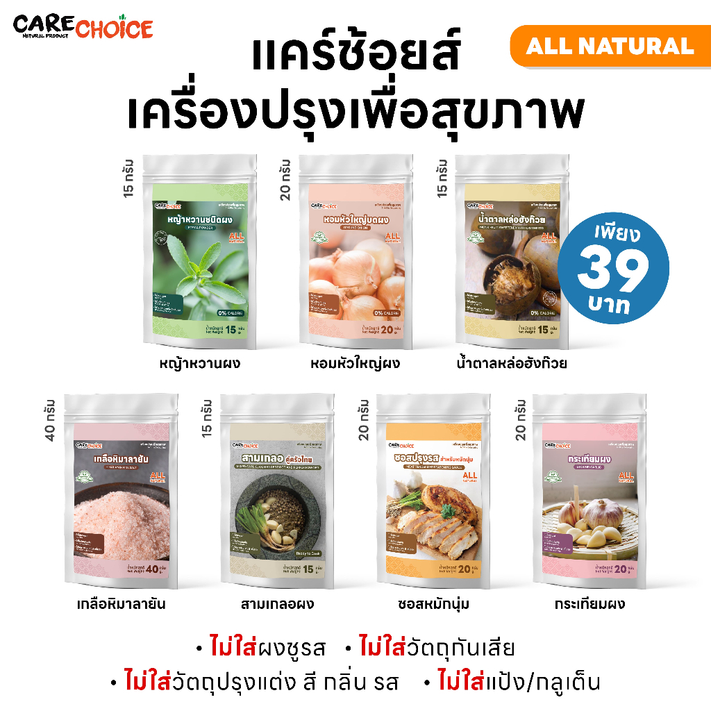 Care Choice แคร์ช้อยส์ 22 สูตรผงปรุงรสเพื่อสุขภาพ ผงปรุงรสผักในซอง Healthy Seasoning Powder Sachet