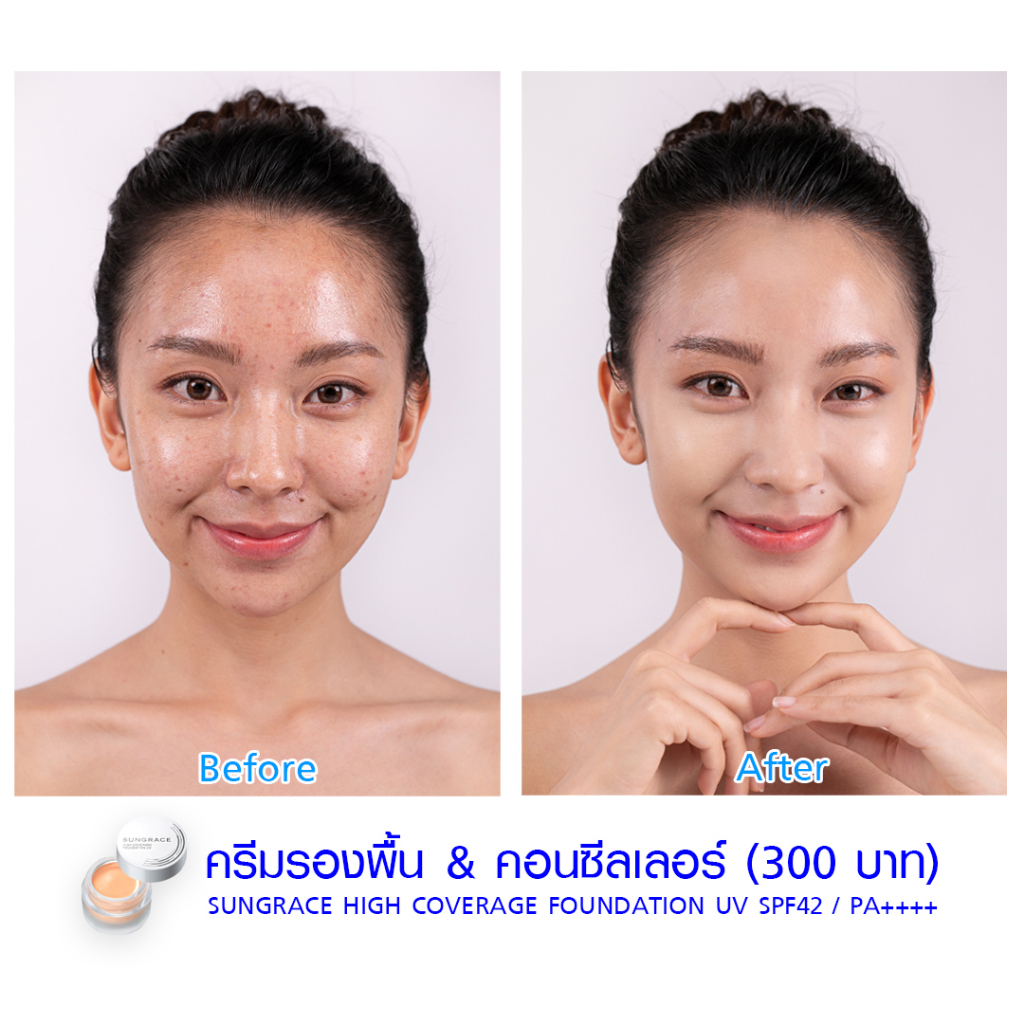 SUNGRACE HIGH COVERAGE FOUNDATION UV SPF42 / PA++++ ครีมรองพื้ น ซันเกรส รองพื้น