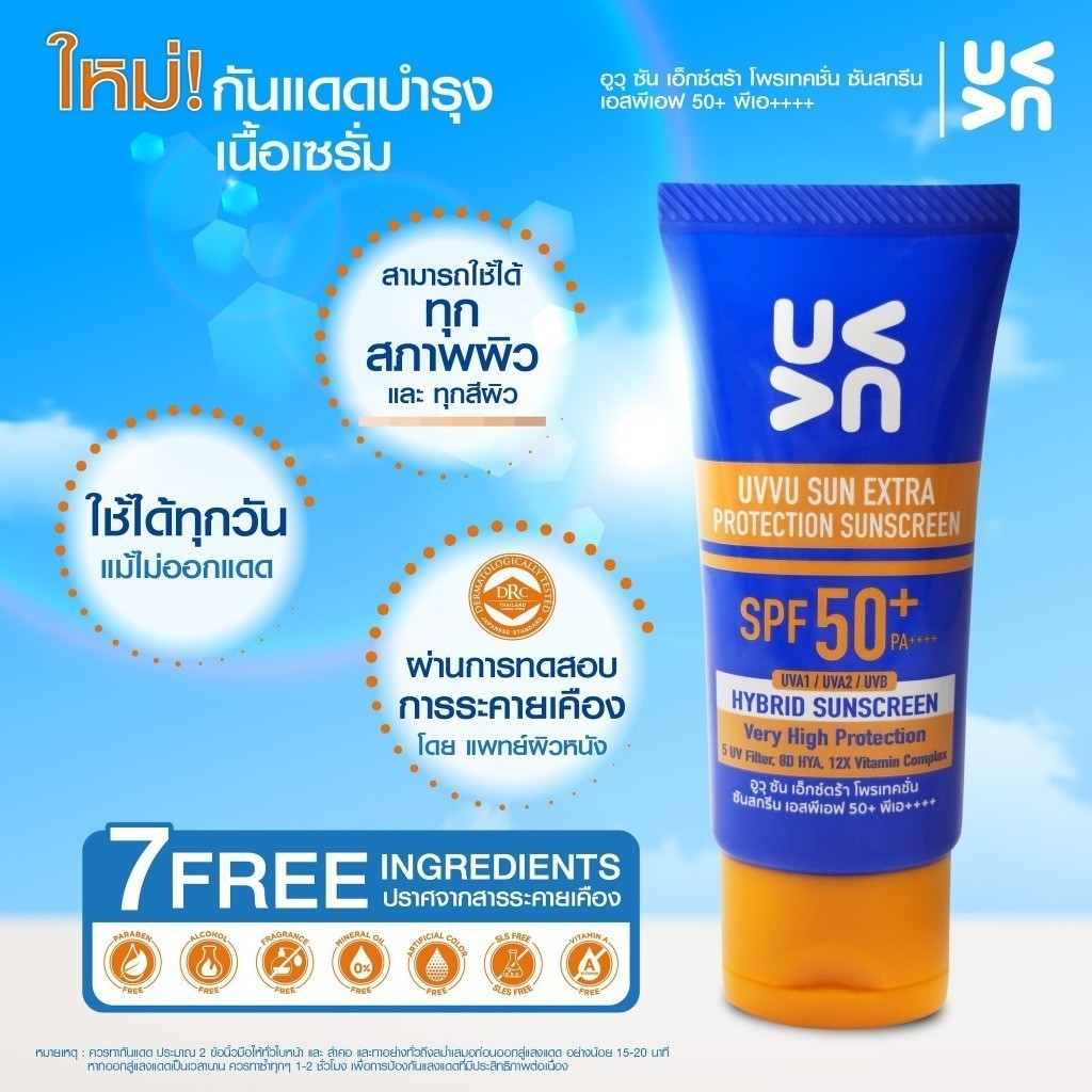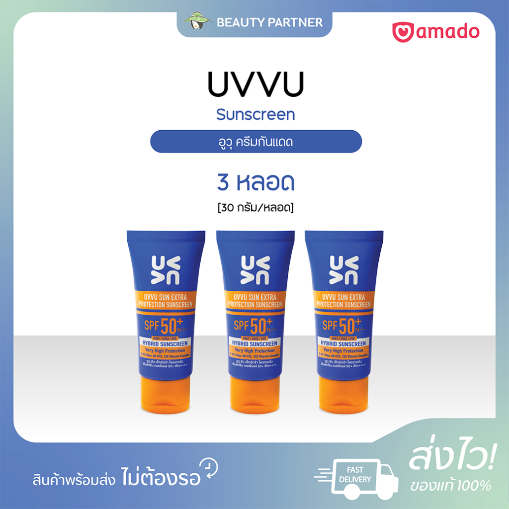 Amado UVVU Sun Extra Protection Sunscreen อูวุ ซัน เอ็กซ์ตร้าโพรเทคชั่น เซรั่ม SPF50+ PA+++ [30 กรัม] [3 หลอด]