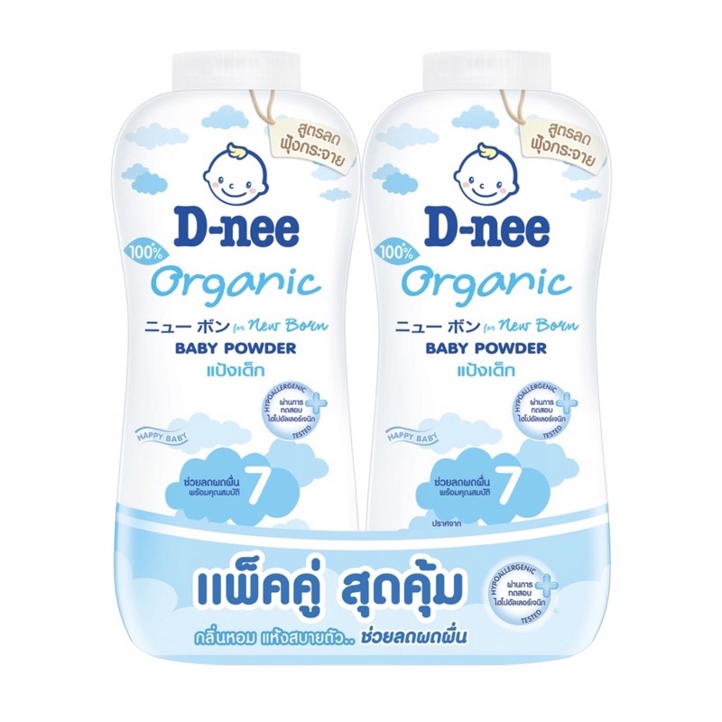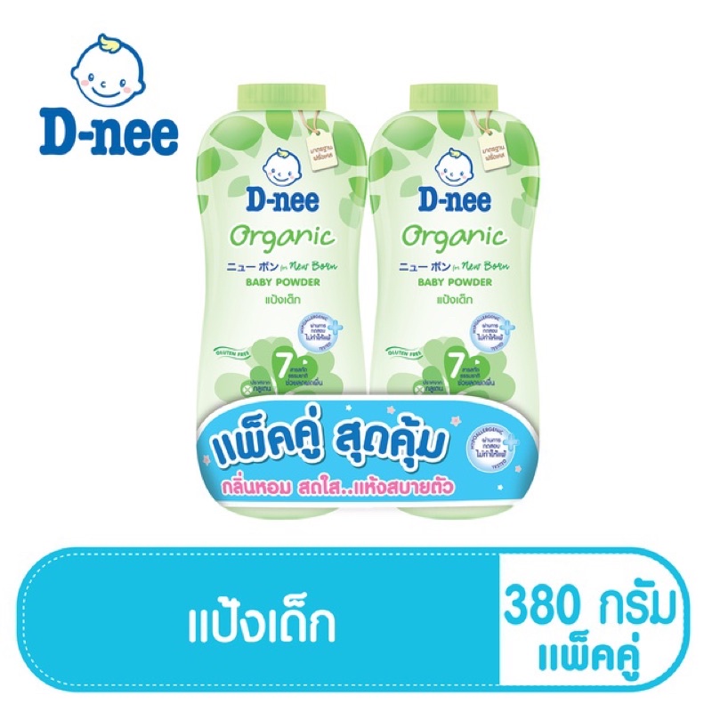 D-nee ดีนี่ ผลิตภัณฑ์แป้ง สูตรออแกนิค สำหรับเด็ก ขนาด 350 กรัม 2 ขวด (1คู่)
