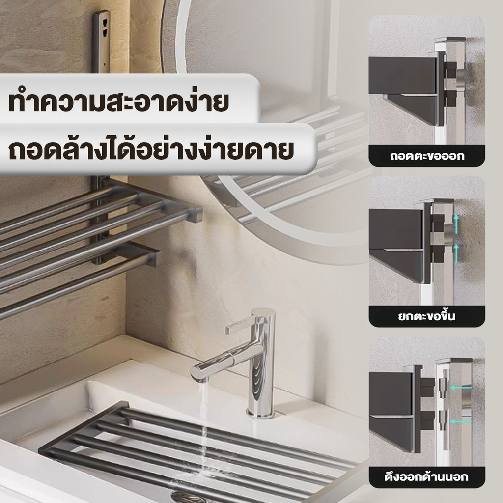 ราวแขวนผ้าขนหนู ชั้นวางของในห้องน้ำ ราวตากผ้าในห้องน้ำ 2/3ชั้น ไม่เป็นสนิม วิธีการติดตั้งสองวิธี รับน้ำหนักได้ดี