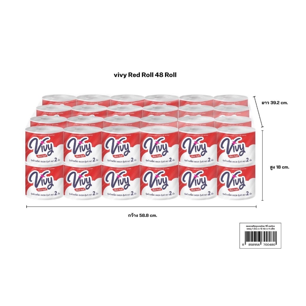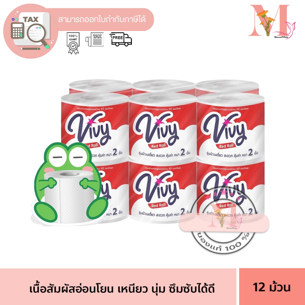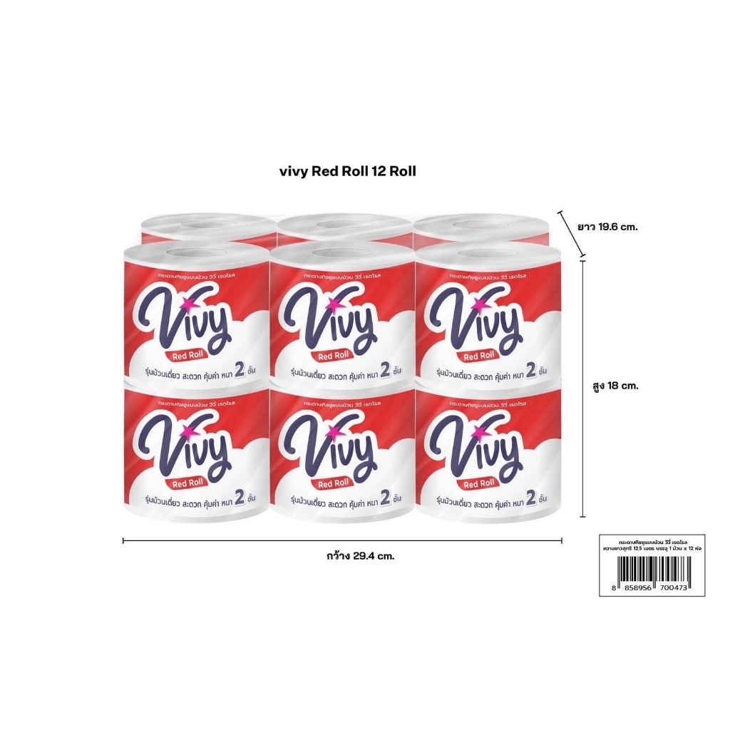 Vivy Tissue Roll วีวี่เรดโรล กระดาษชำระวีวี่แบบม้วน สะอาด ปลอดภัย เกรดพรีเมี่ยม 12 ม้วน