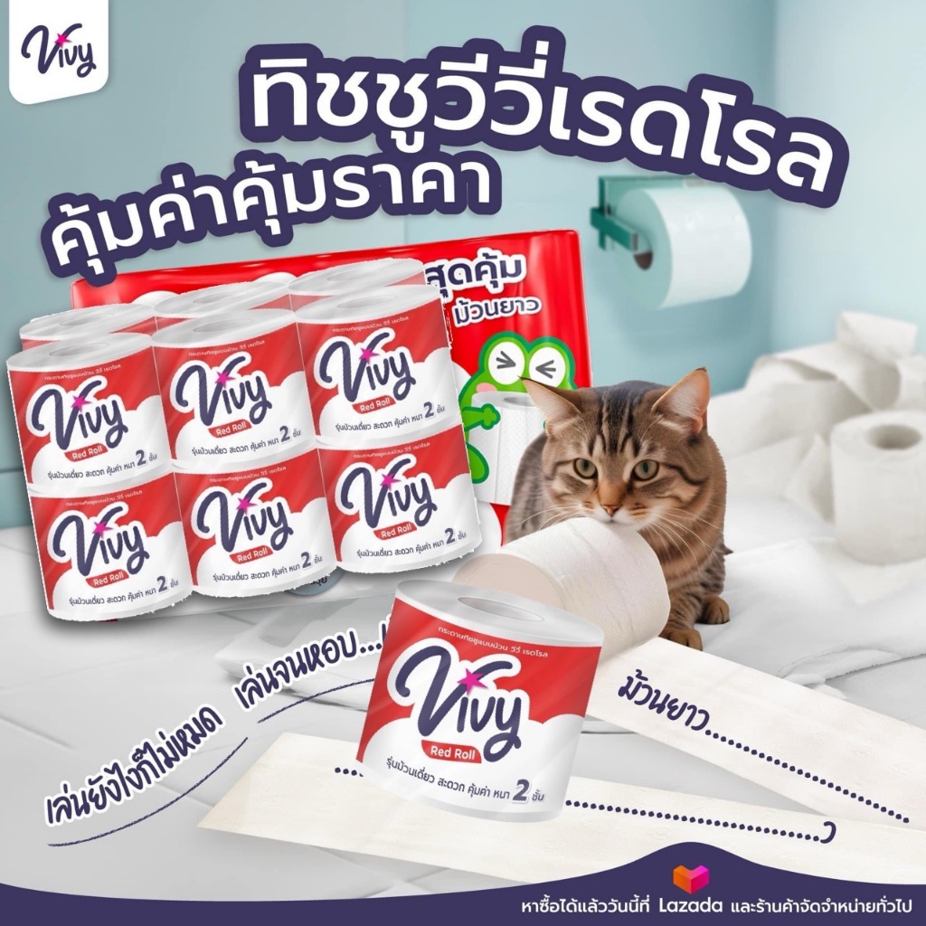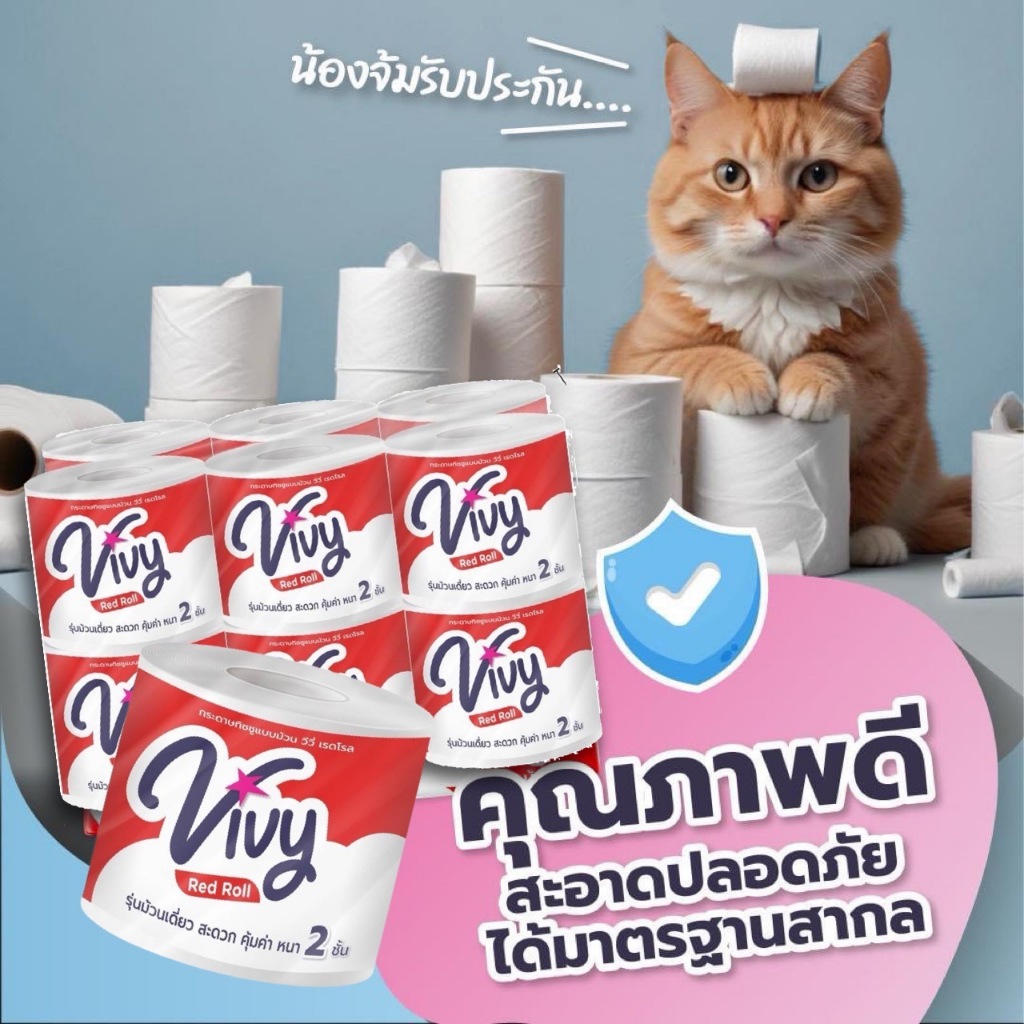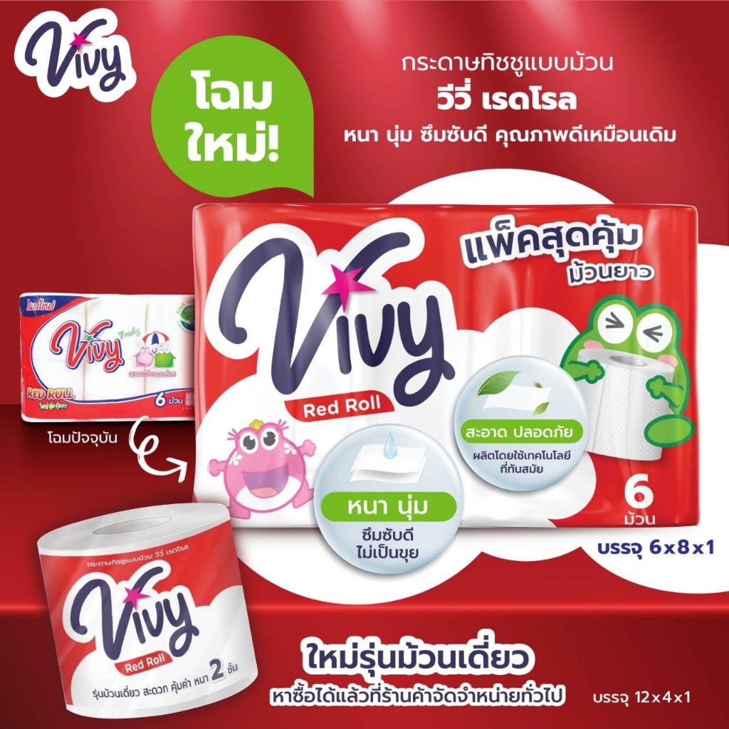 Vivy Tissue Roll วีวี่เรดโรล กระดาษชำระวีวี่แบบม้วน สะอาด ปลอดภัย เกรดพรีเมี่ยม 12 ม้วน