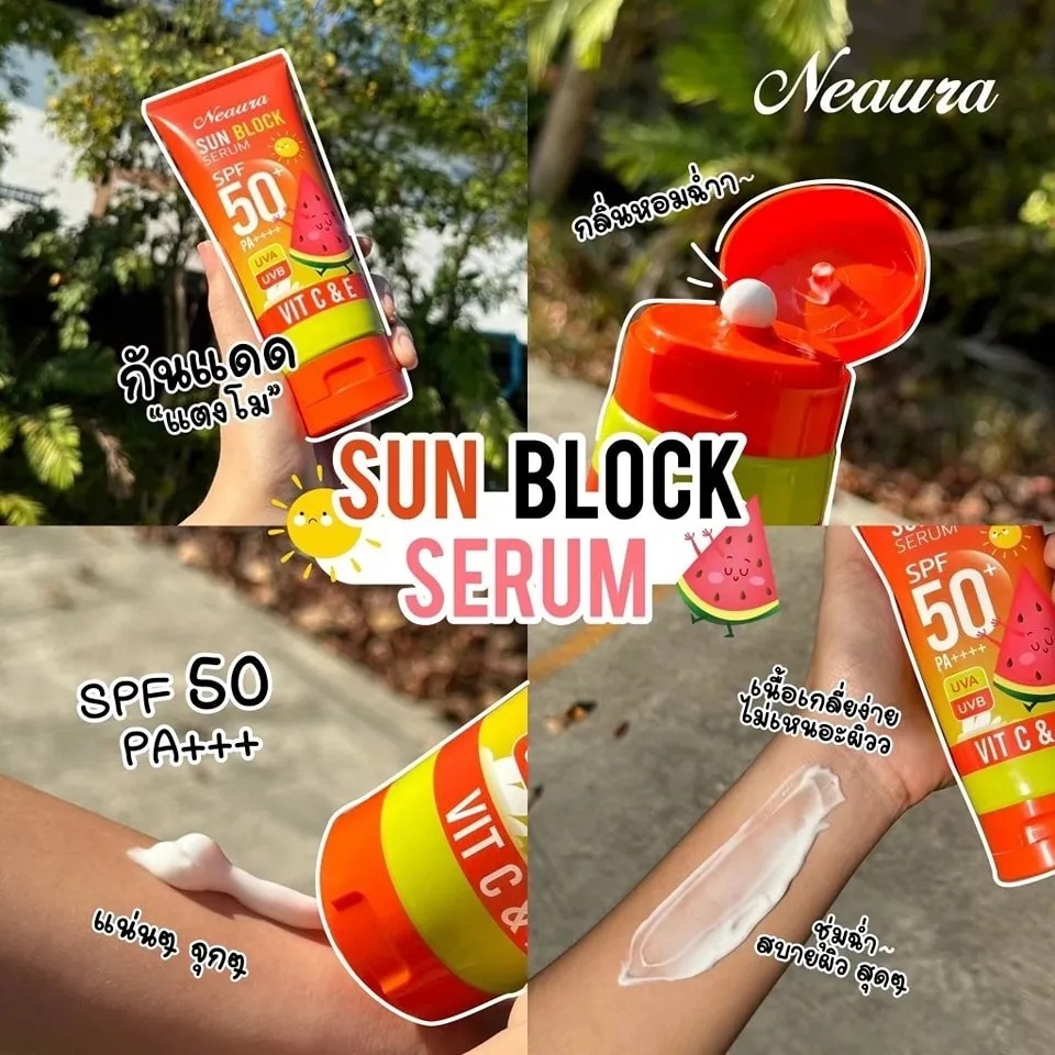 (150g/หลอด) Neaura Sun Block Serum SPF50+ PA++++ นีออร่า ซัน บล็อก เซรั่ม กันแดดทาตัว [8840]