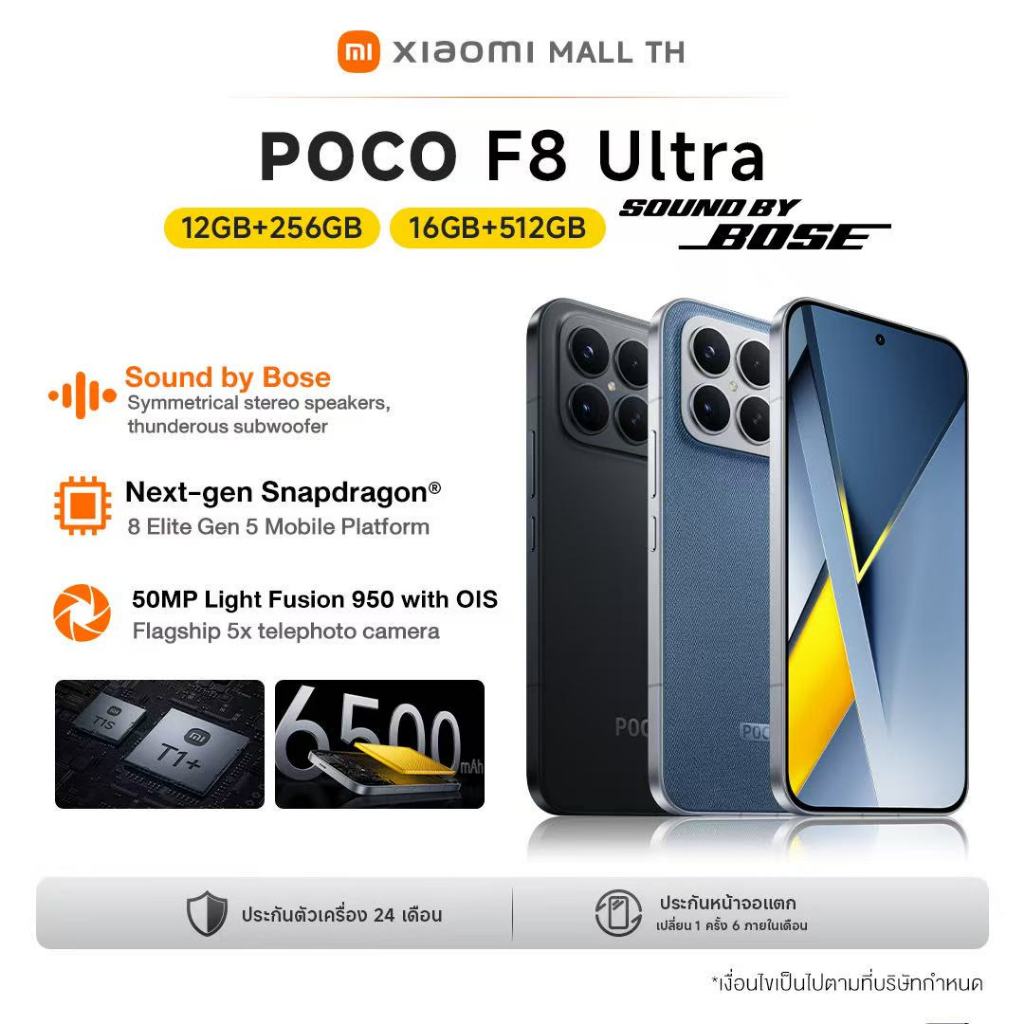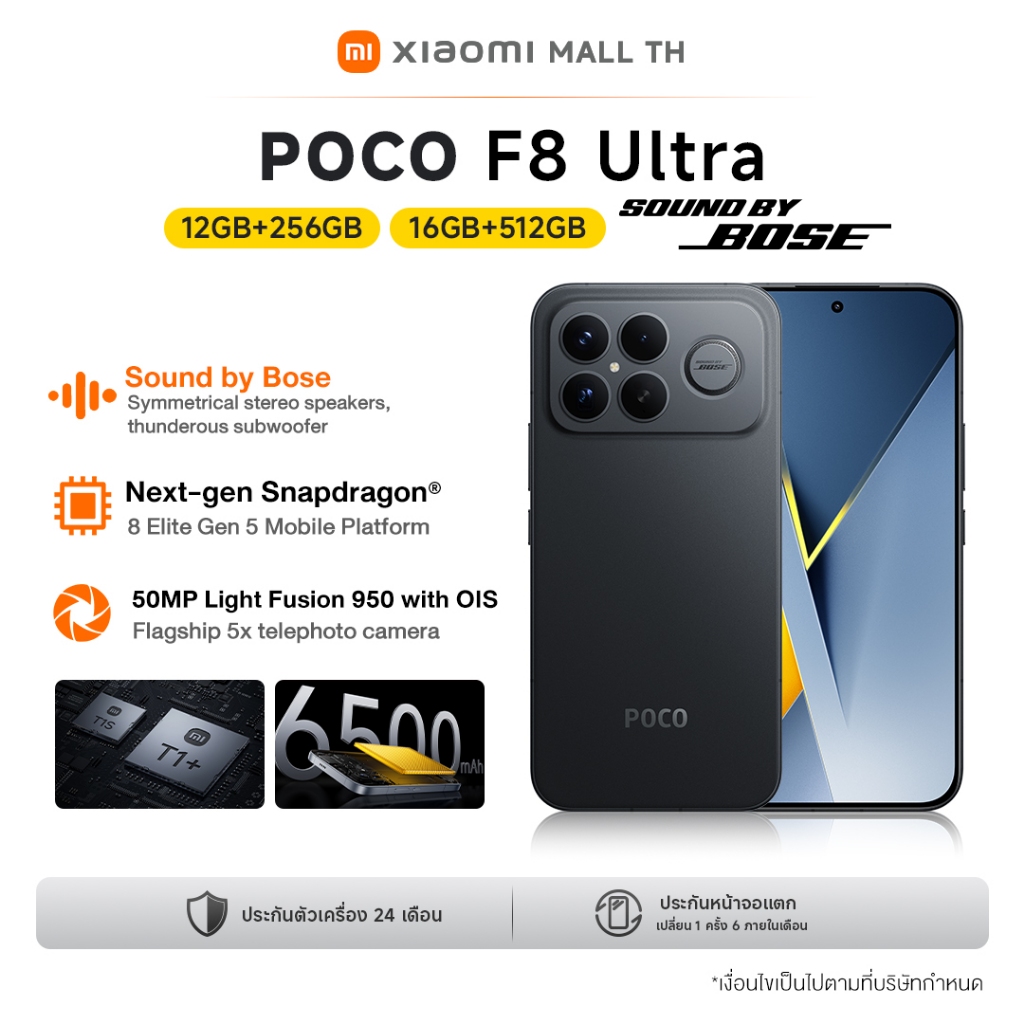[NEW] Xiaomi POCO F8 Ultra 12+256/16+512 ชิปเซ็ตเรือธง Snapdragon® 8 Elite | หน้าจอ 6.9 นิ้ว 120Hz POCO HyperRGB AMOLED
