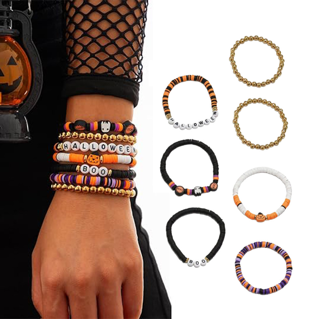 สร้อยข้อมือฟักทองและชุดสร้อยข้อมือกะโหลกแมงมุม ธีมฮัลโลวีน สำหรับทั้งผู้ชายและผู้หญิง เป็นของขวัญสำหรับเทศกาล
