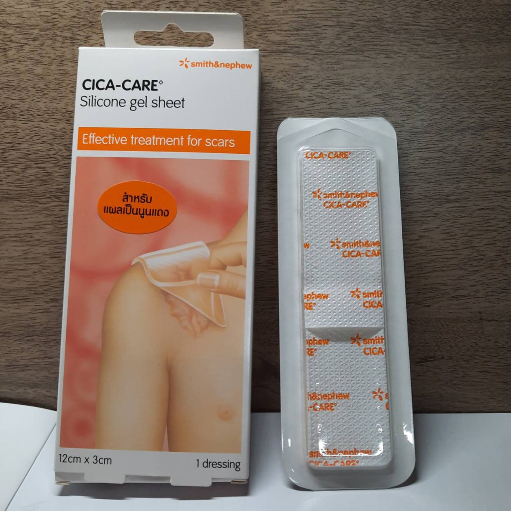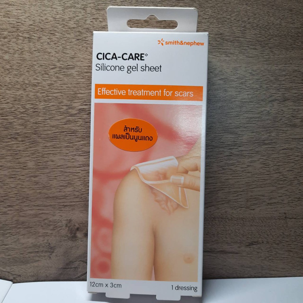 cica care silicone gel sheet แผ่นซิลิโคน เจล ชีท สำหรับแผลเป็น นูนแดง 12x3cm 1แผ่น ใช้ได้28วัน0870
