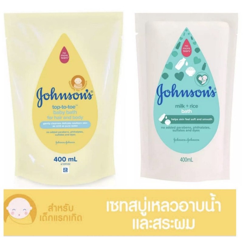 Johnson's จอห์นสัน สบู่เหลว มิลค์+ไรซ์ และจอห์นสันเบบี้ ท็อปทูโท ถุงเติม ขนาด 400 ml 1 ถุง