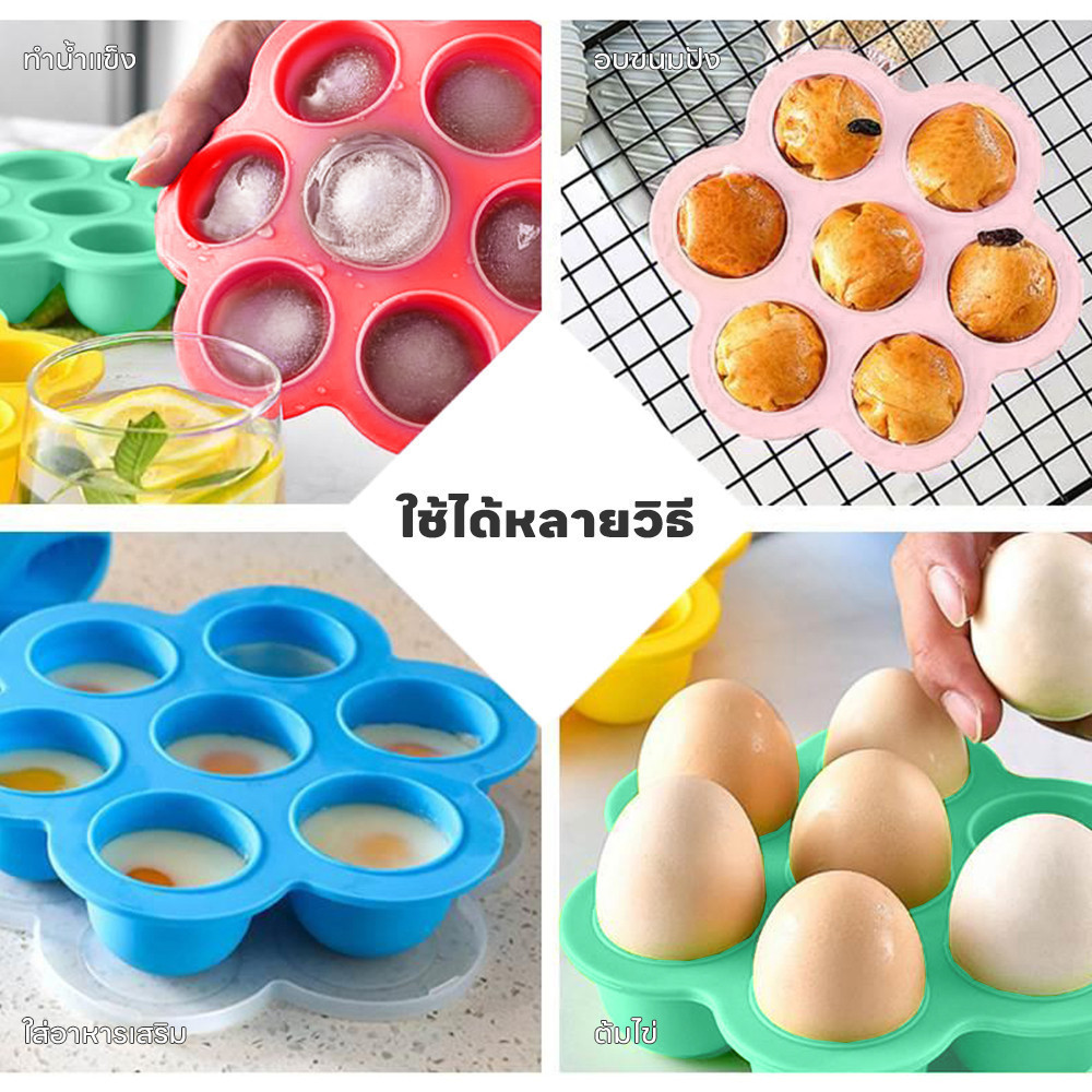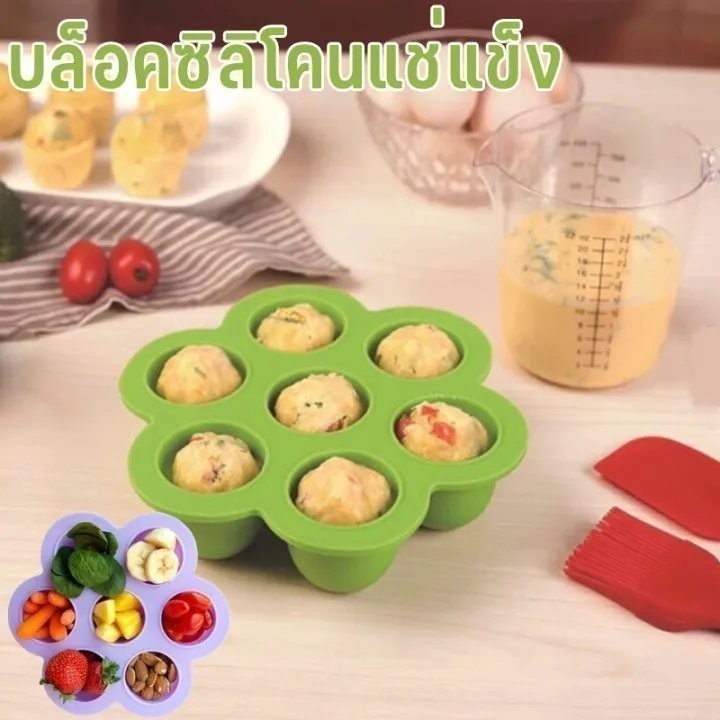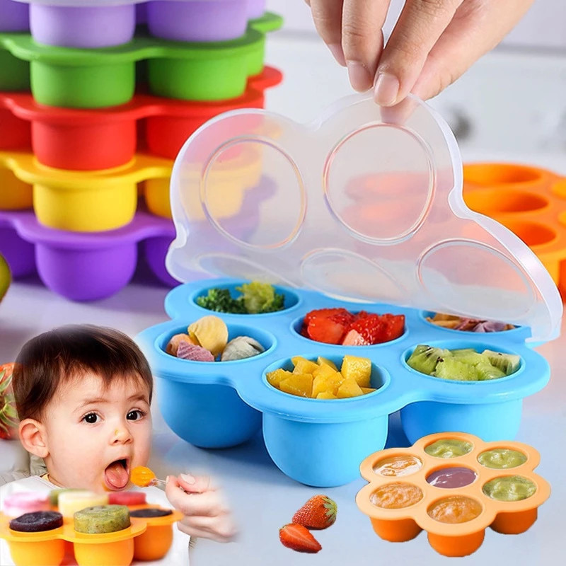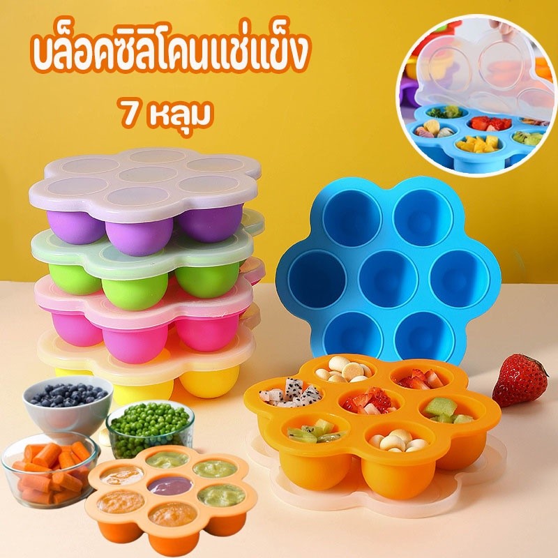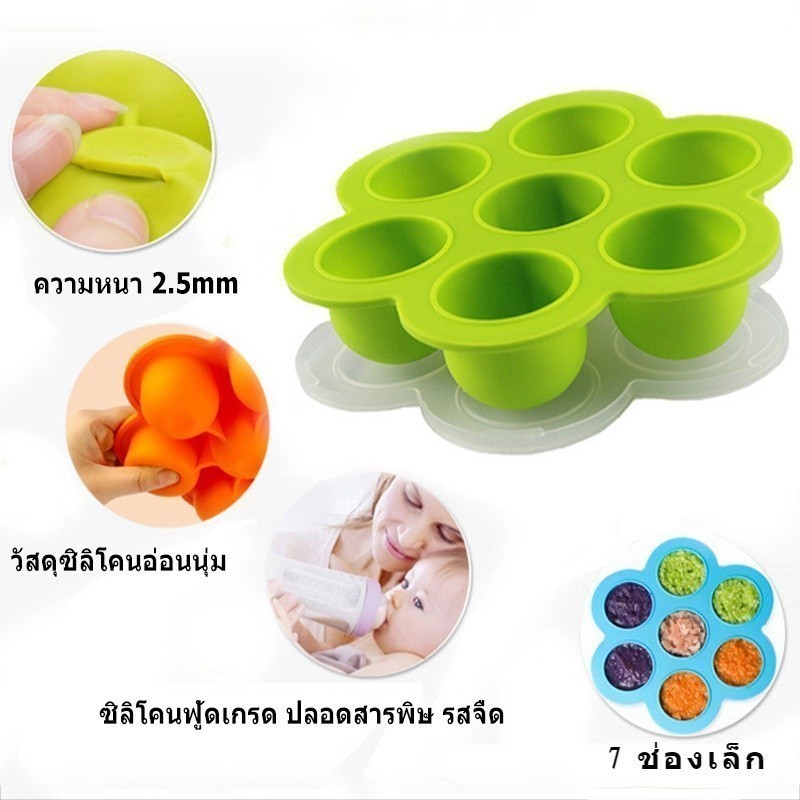 บล็อคซิลิโคนแช่แข็ง 7 หลุม พร้อมฝาปิด บล็อคซิลิโคนแช่แข็งอาหารเด็ก วัสดุฟู๊ดเกรดไร้สารพิษ 100% เข้าเตาไมโครเวฟได้