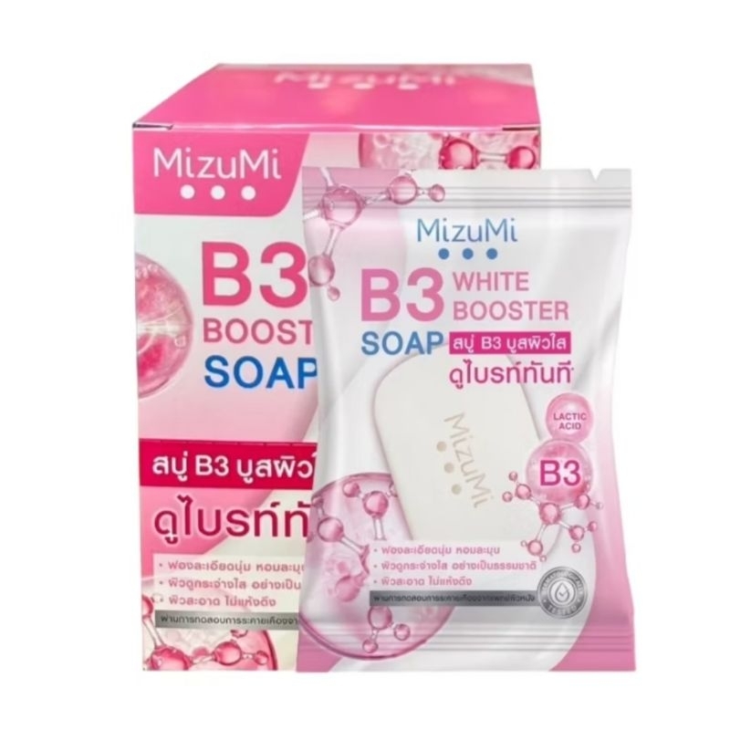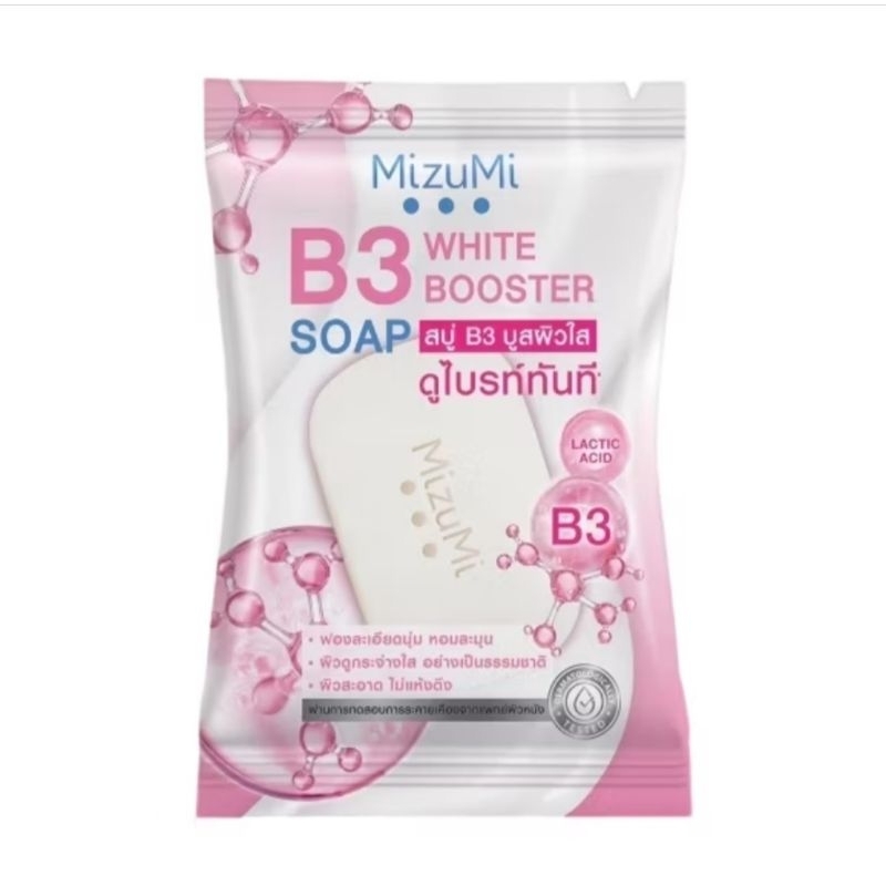ส่งฟรี/มีไลฟ์ MizuMi B3 White Booster Soap มิซึีมิ บี3 ไวท์ บูส เตอร์ โซพ 60 g. สบูมิซีมิ สบูบูสผิว