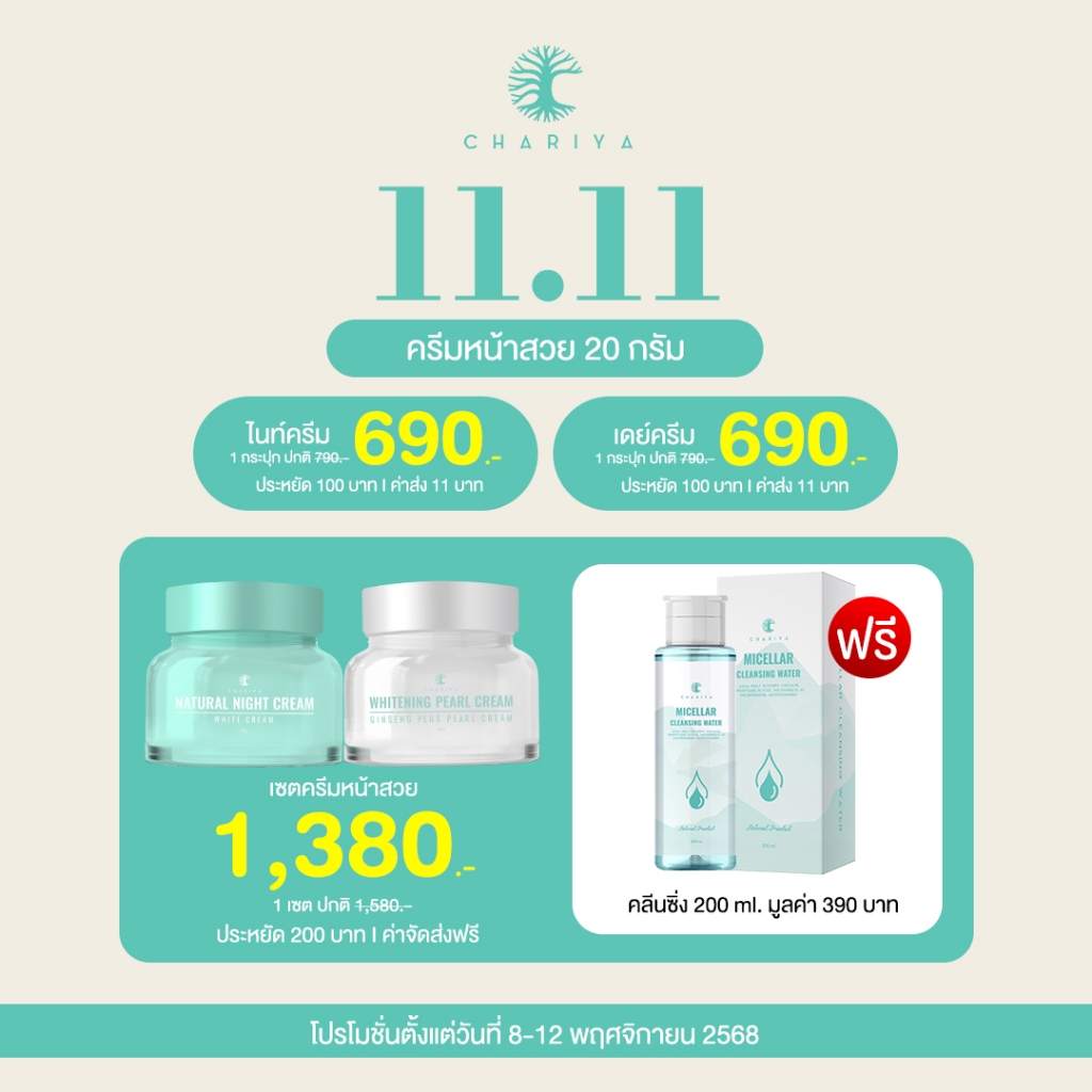 ชาริยา เซตครีมหน้าใส 20 กรัม CHARIYA Day & Night Cream ครีมเซตเดย์ไนท์ ลดฝ้า กระ จุดด่างดำ ครีมหน้าขาว กระจ่างใส