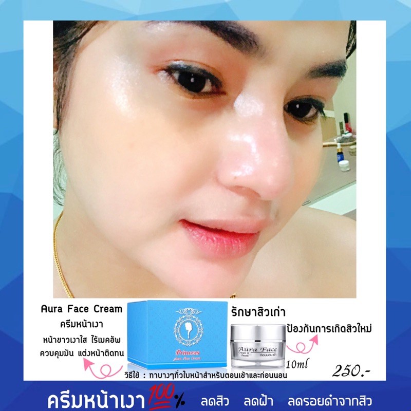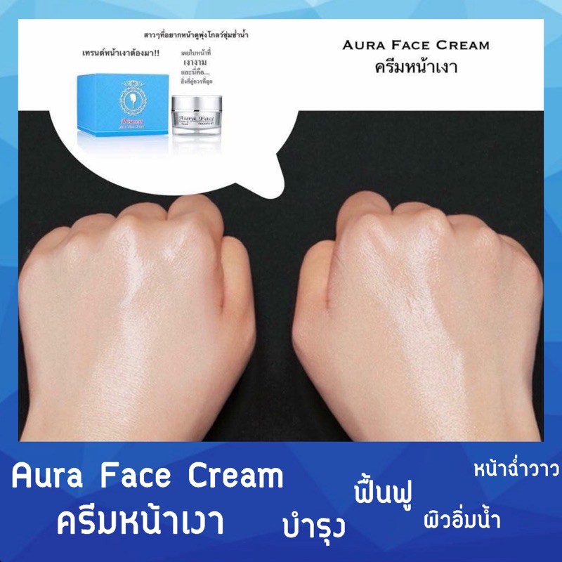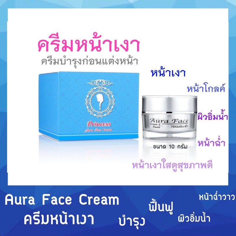 Aura Face Cream 10 g. ครีมทาหน้าเงา บำรุง ผิวหน้า ก่อนแต่งหน้า แต่งหน้า ติดทน ผิวอิ่มน้ำ ผิวสุขภาพดี