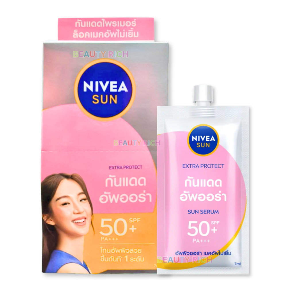 (1 ซอง) Nivea Sun Extra Protect Serum (สีชมพู) เซรั่มกันแดด ผิวหน้าอัพผิวออร่า (7 ml.)