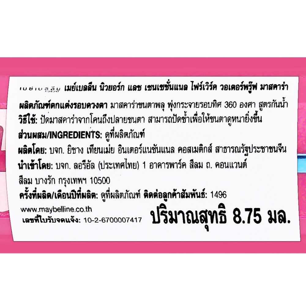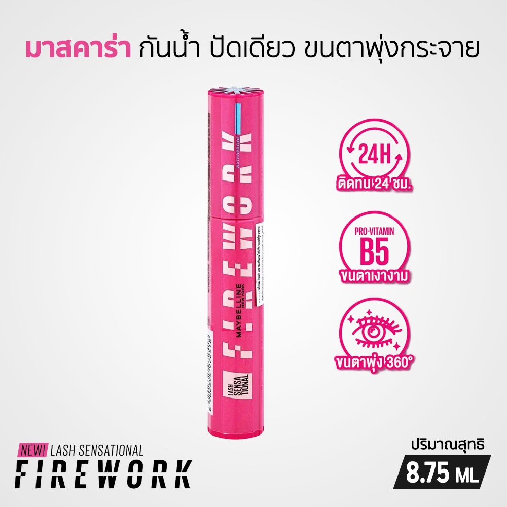 Maybelline Lash Sensational Firework Waterproof Mascara มาสคาร่ากันน้ำ ขนตาพลุ 8.75 ML
