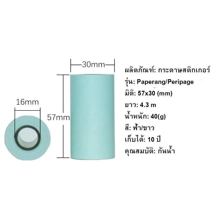 กระดาษปริ้นสติ๊กเกอร์ สำหรับเครื่องปริ้นพกพา Paperang Peripage กันน้ำ แบบปกติ/เว้นขอบ เซต 10 ม้วน