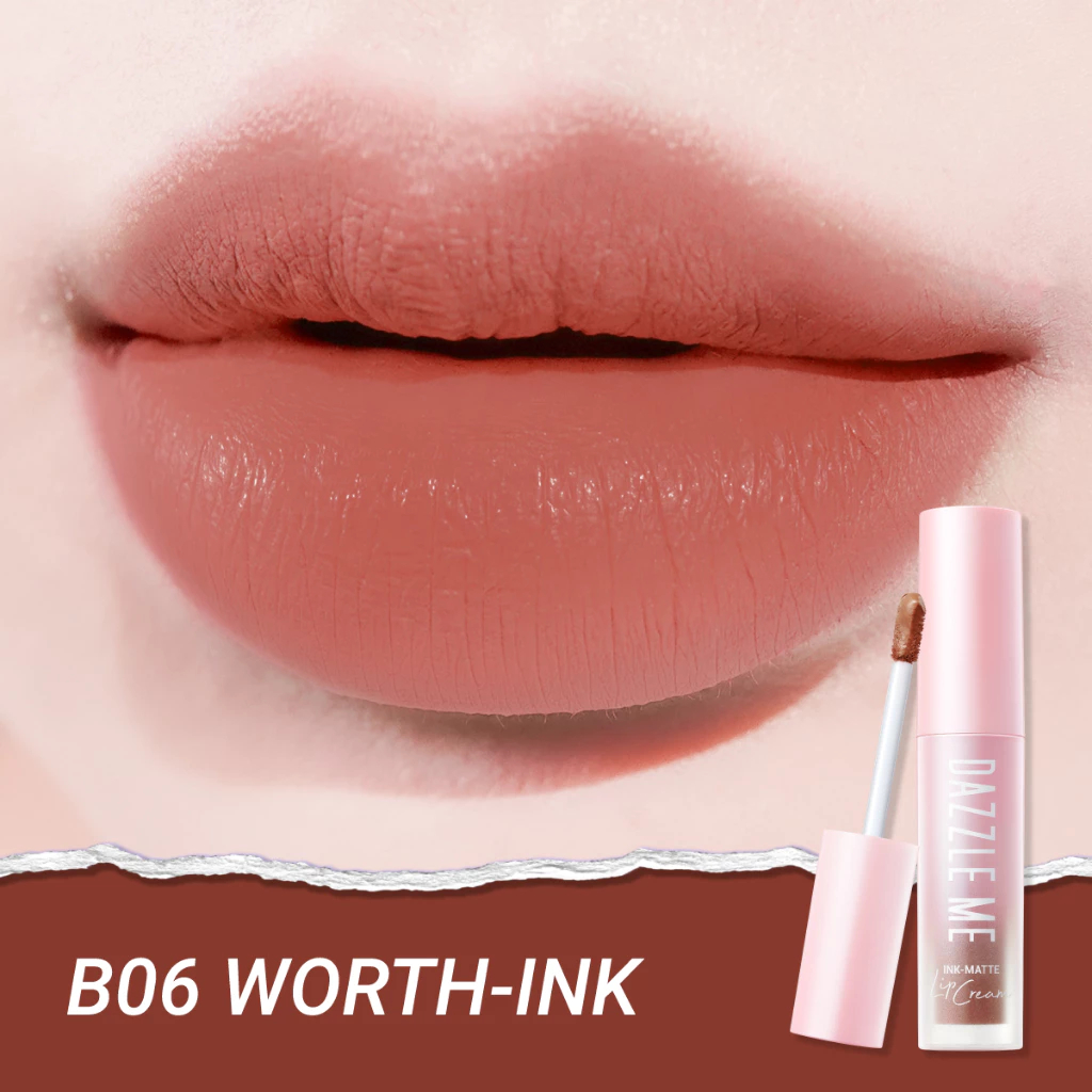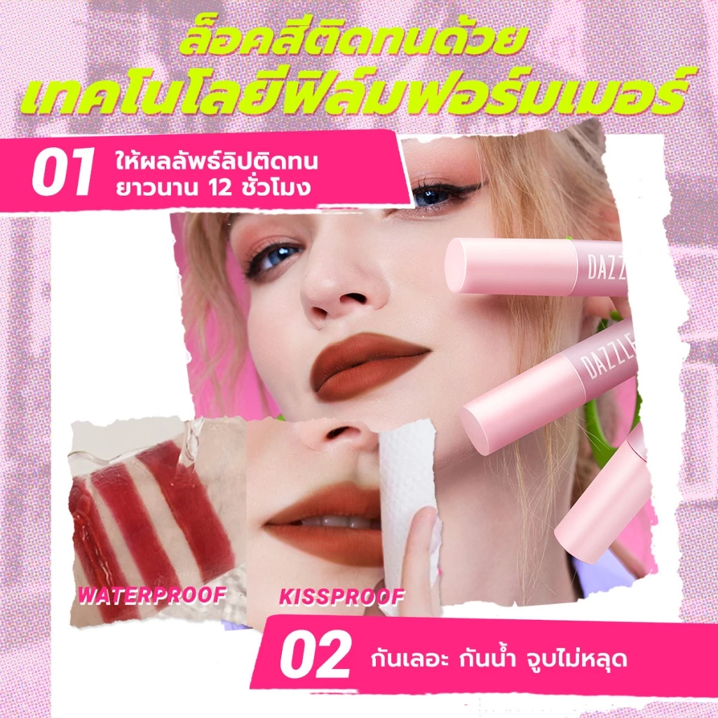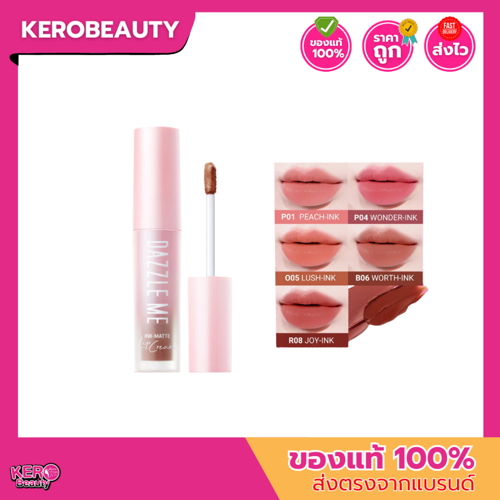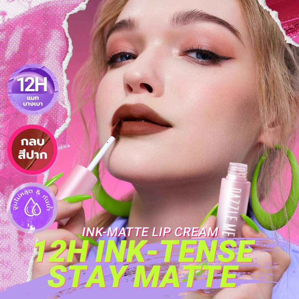 DAZZLE ME Ink-Matte Lip Cream ลิปเนื้อครีมให้ฟินิชแมท ติดทนยาวนาน 12ชม.เม็ดสีแน่นกลบริมฝีปากคล้ำได้อย่างเนียนสนิท