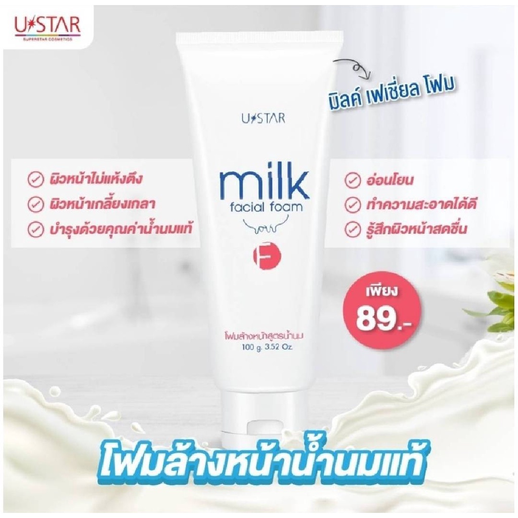 ยูสตาร์ มิลค์ เฟเชี่ยล โฟม 100 กรัม Ustar Milk Facial Foam