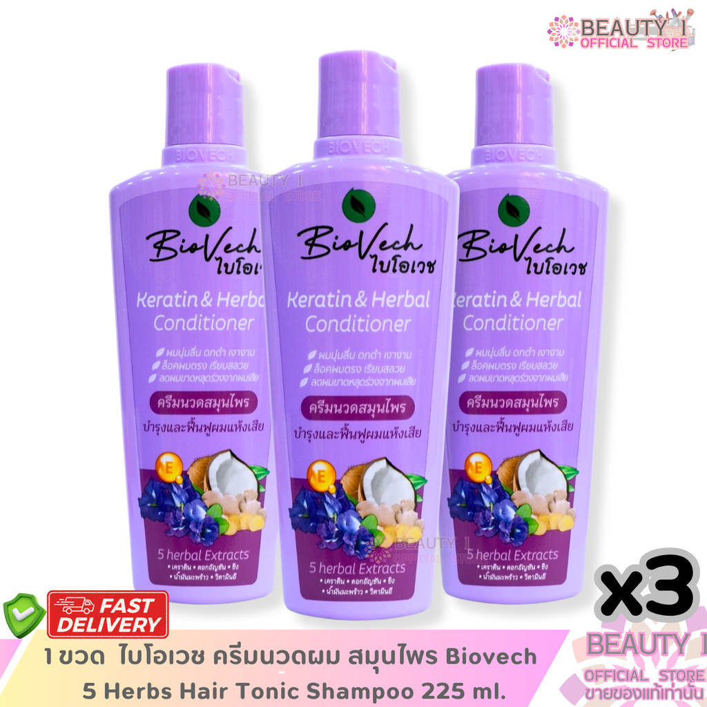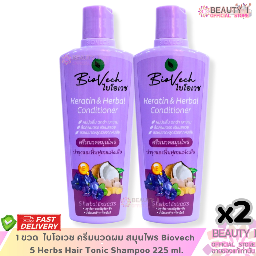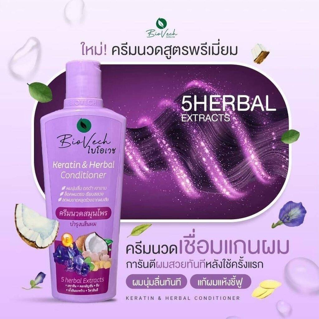 ของแท้ โปรโมชั่น ครีมนวดผม ไบโอเวช Biovech 5 Herbs Keratin & Herbal Conditioner 225 ml.