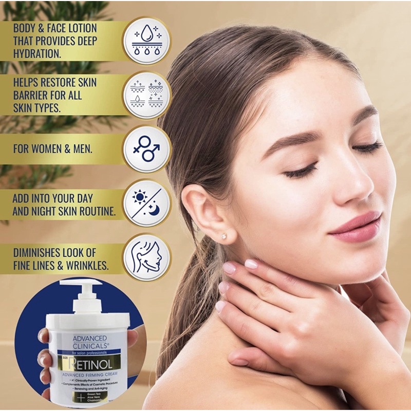[พร้อมส่ง]🇺🇸Advanced Clinicals Retinol Cream Face & Body Moisturizer Anti Aging Skin Care Lotion, Moisturizing Formulas