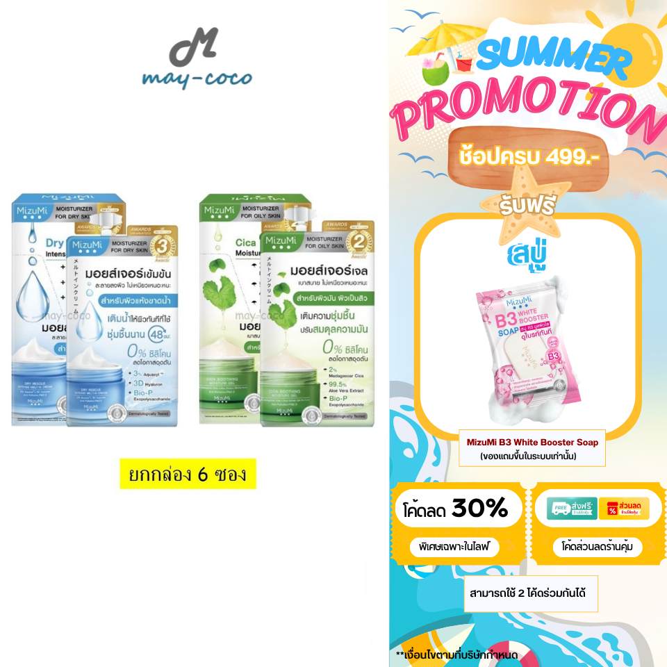 ถูก/แท้/มีไลฟ์ (ยกกล่อง 6 ซอง) มอยส์เจอไรเซอร์ MizuMi Dry Rescue Cream Cica Soothing Moisture Gel เจลครีม ฉ่ำ ชุ่มชื้น