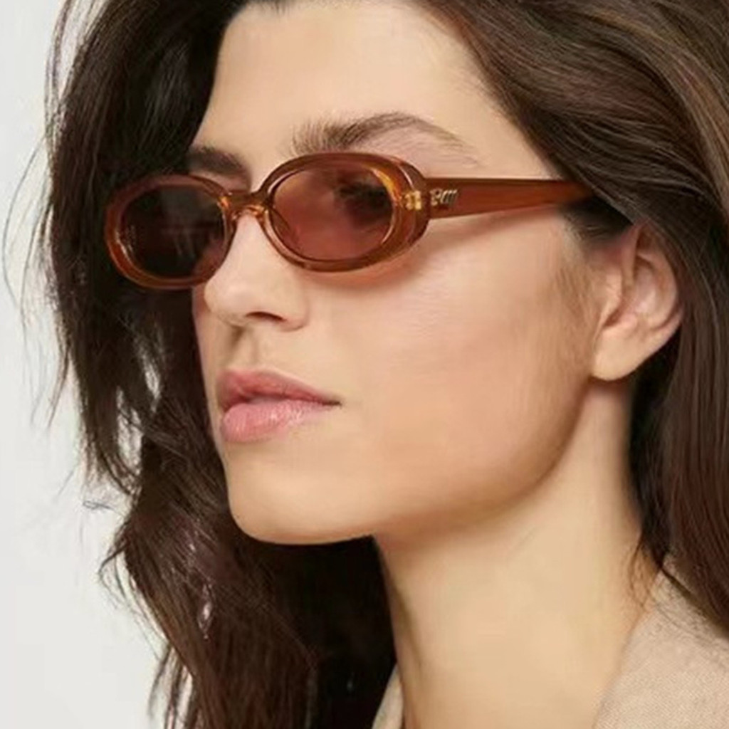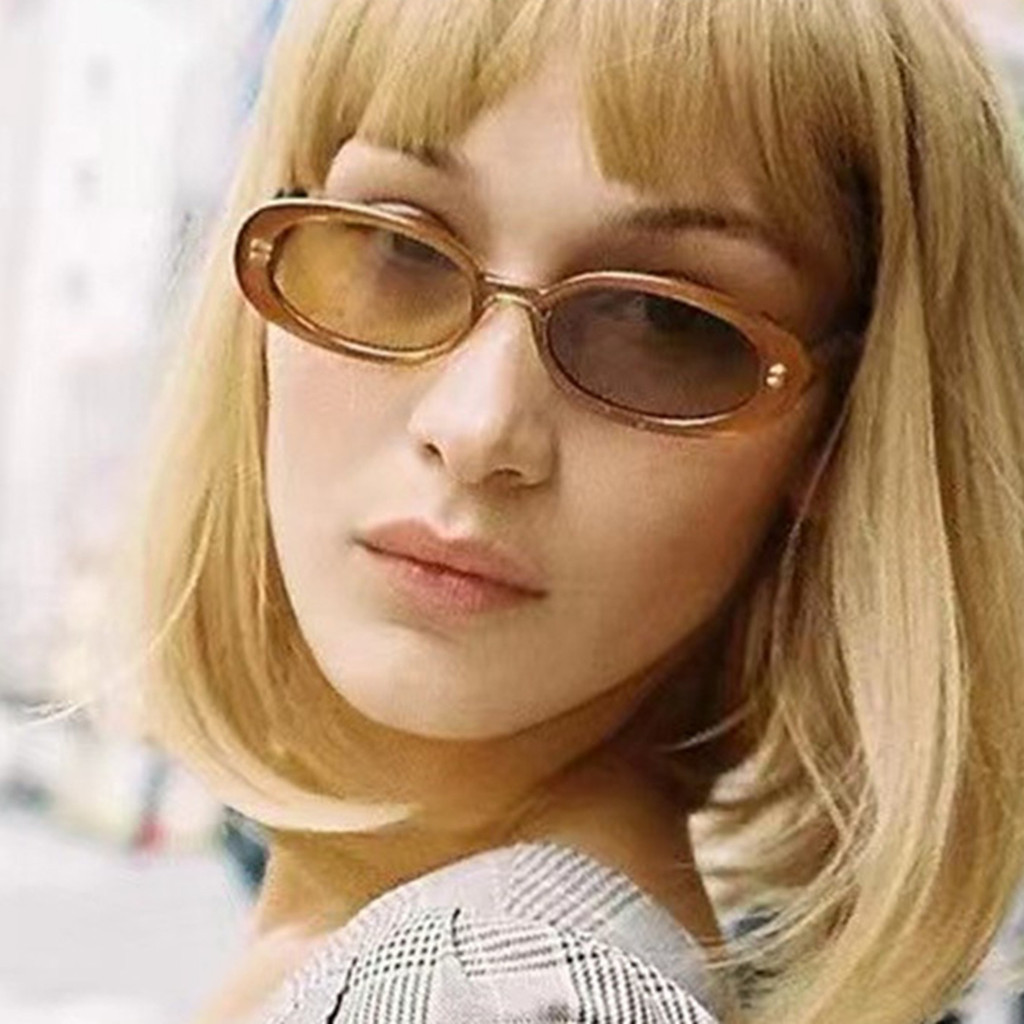 Vintage แว่นตากันแดดรูปไข่ผู้หญิงหรูหราขนาดเล็กแว่นตากันแดด Retro Rivets แว่นตากันแดด 90s สไตล์วินเทจ Shades