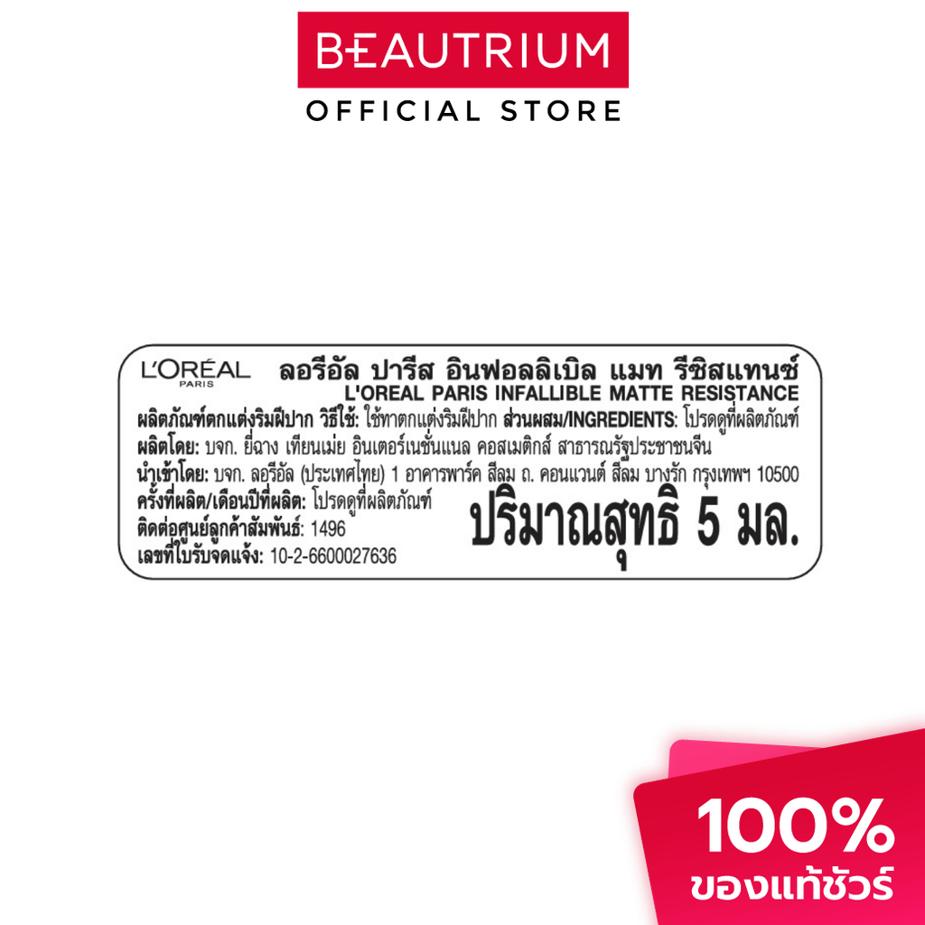 L'ORÉAL PARIS Infallible Matte Resistance ลิปสติก 5g