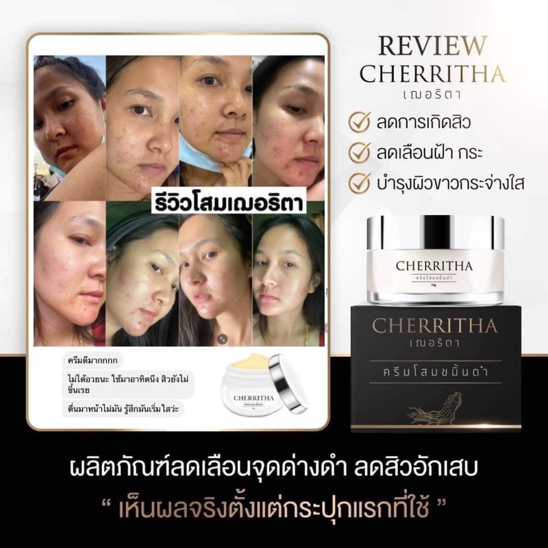 โสมเฌอริตา CHERITHA 🖤 ครีมโสมขมิ้นดำ 🖤 ครีมลดสิว ฝ้า กระ จุดด่างดำ ครีมหน้าขาวใส