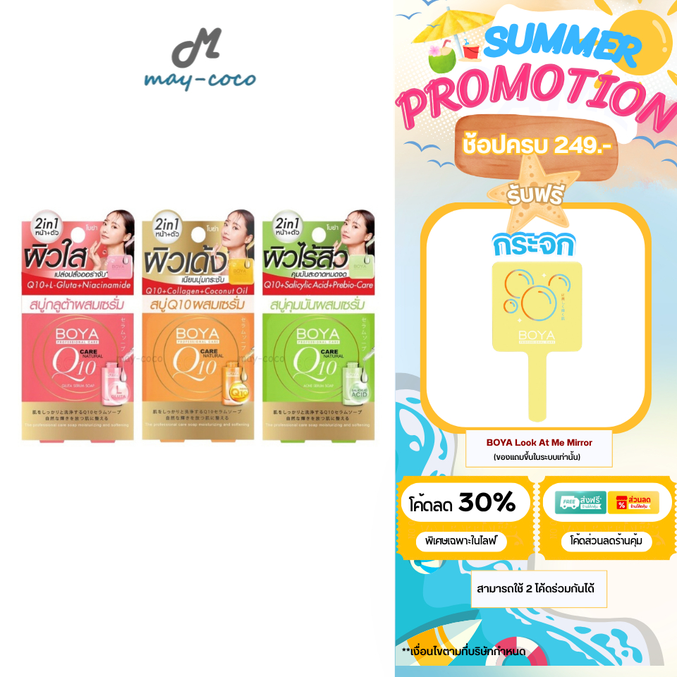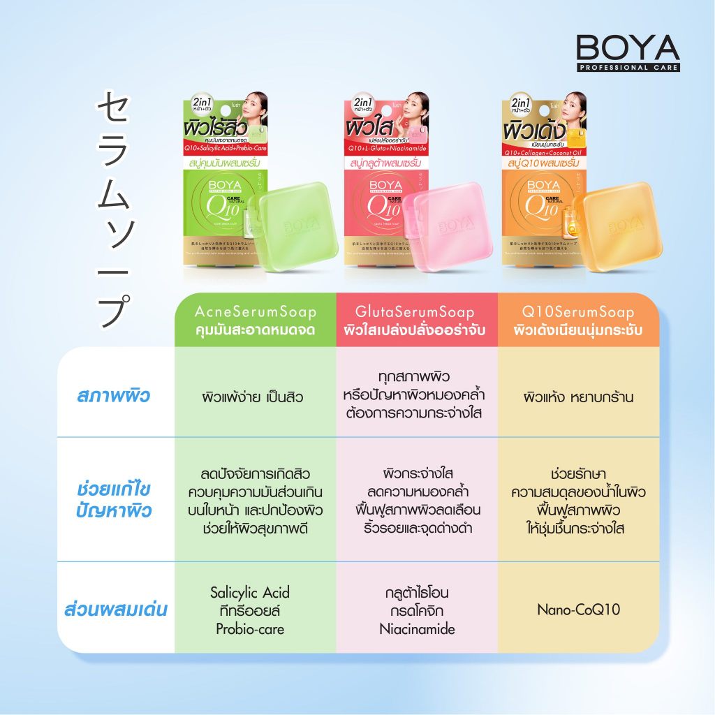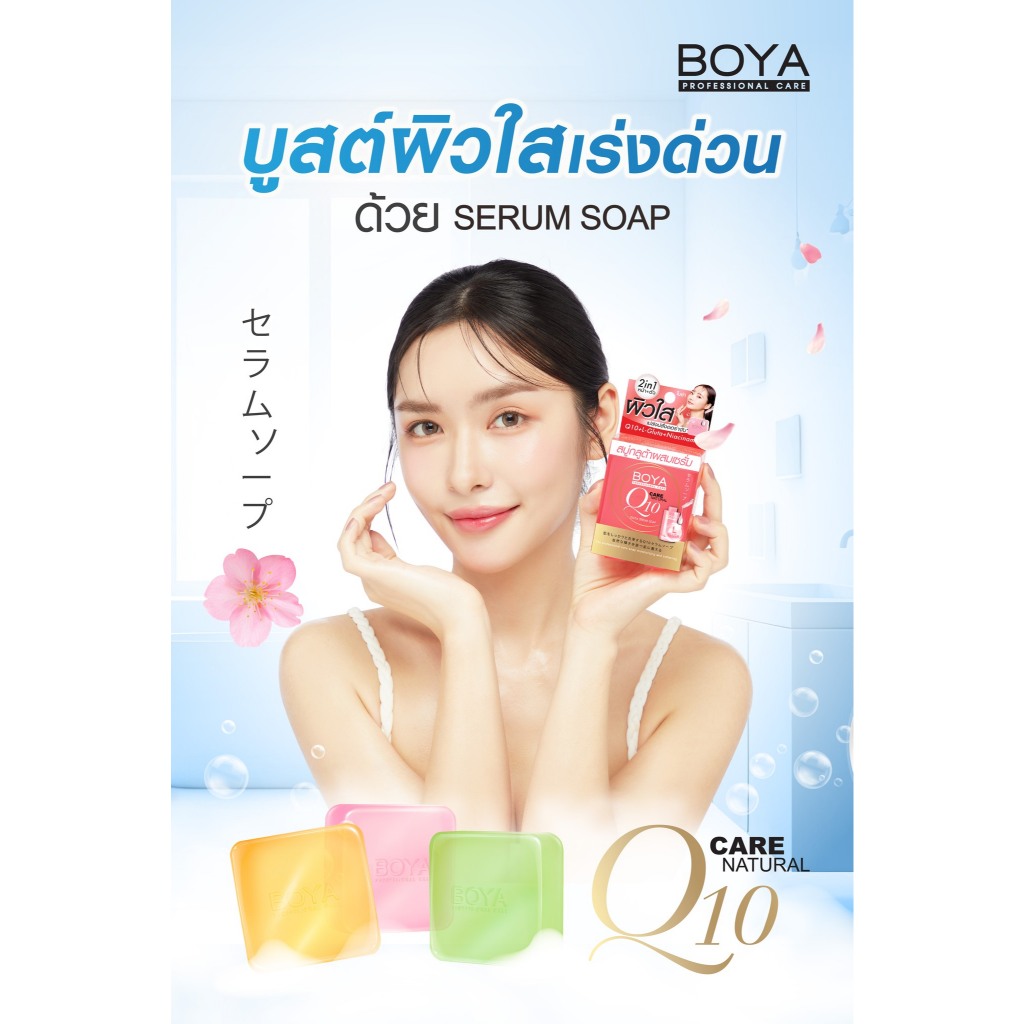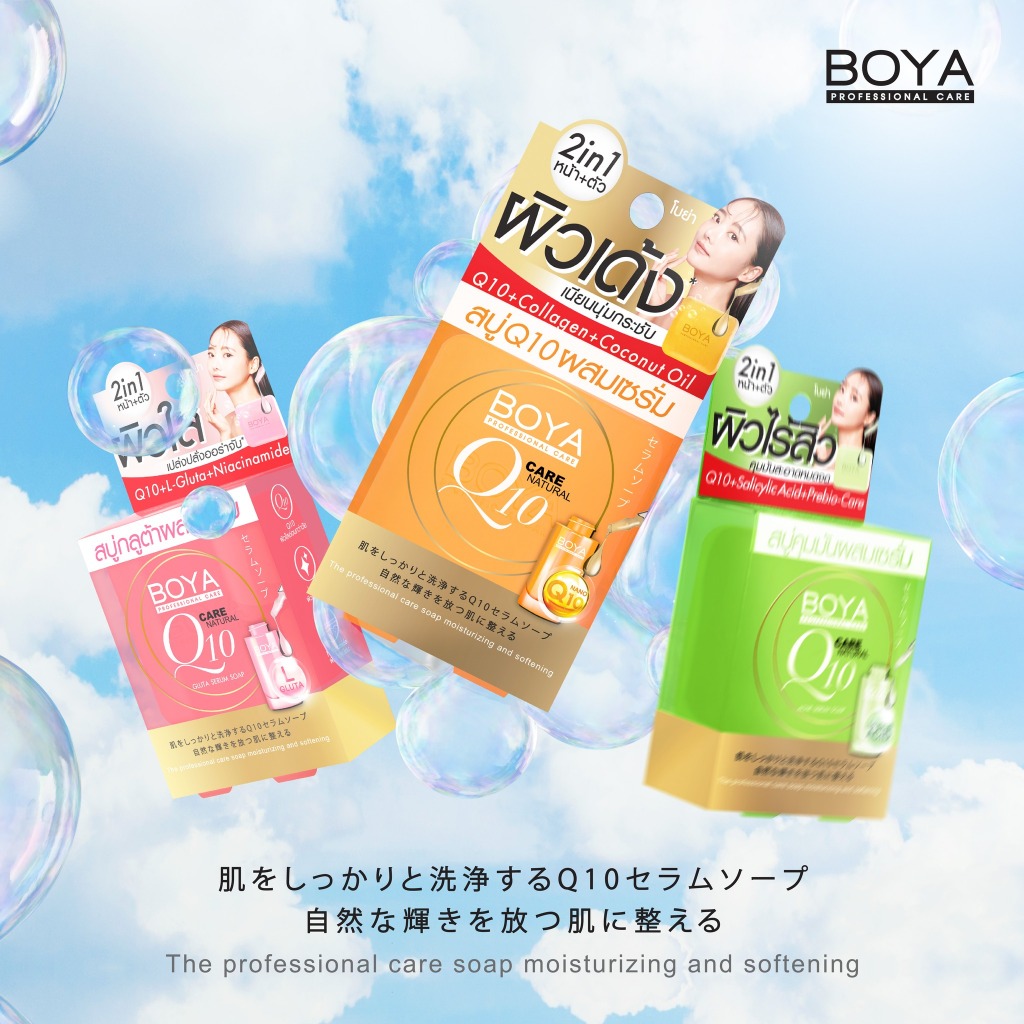 ถูก/แท้/มีไลฟ์ สบู่ BOYA Serum Soap โบย่า สบู่ผสมเซรั่ม สบู่ก้อน สบู่กลูต้า Q10 คุมมัน ผิวใส ผิวเด้ง ผิวไร้สิว เนียนนุ่ม