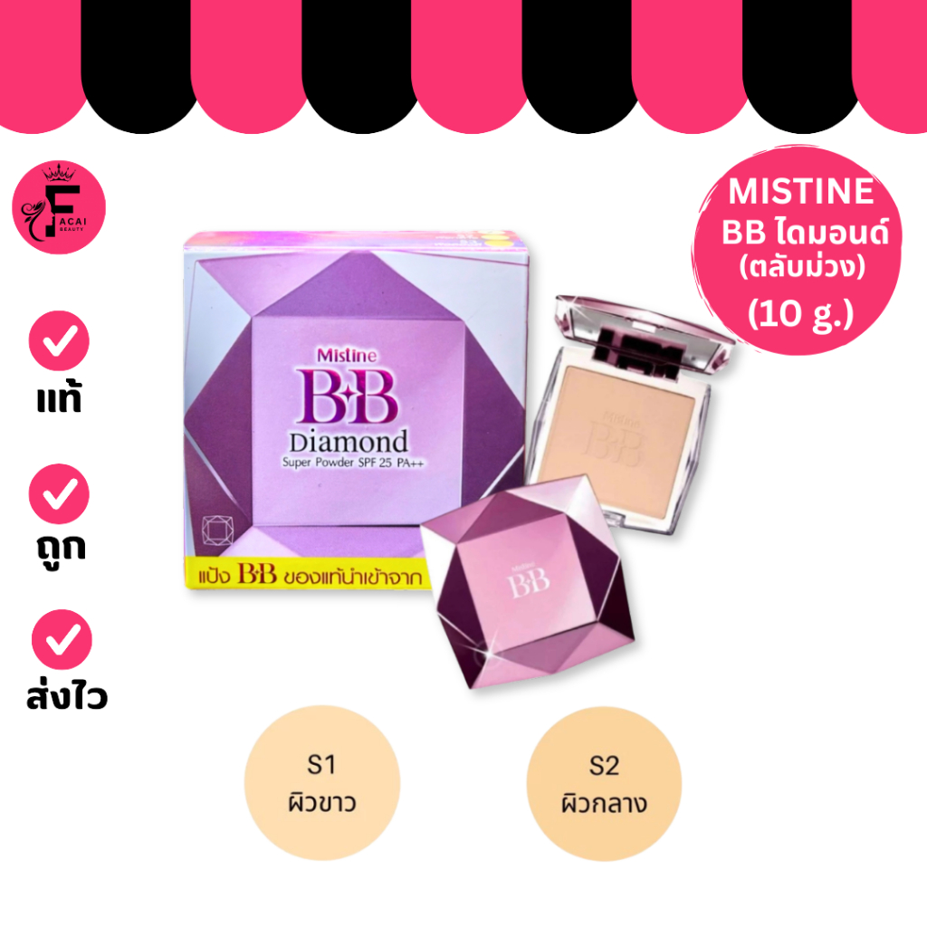 (1 ตลับ) Mistine มิสทิน แป้งพัฟ บีบีไดมอน SPF25PA++ (ขนาด 10 กรัม)