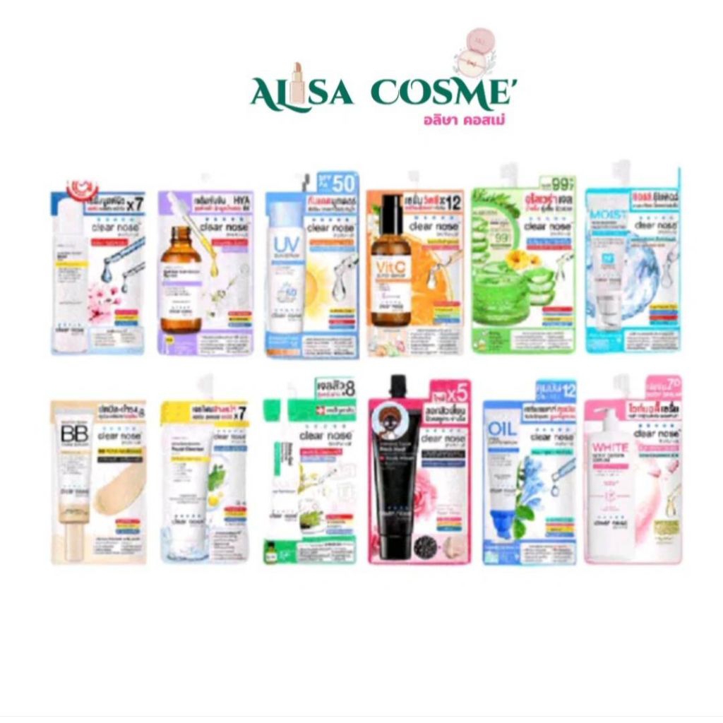 Clear nose(เคลียร์โนส)รวมสูตร /กันแดด/ครีมบำรุงผิวหน้า/ โลชั่นบำรุงผิวกาย/ เจลล้างหน้า (1ซอง)