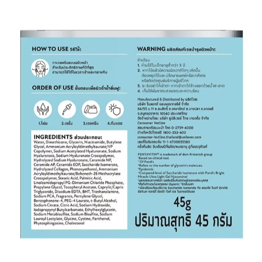 ส่งด่วน🌸 พอนด์ส ไฮดร้า มิราเคิล ครีมบำรุงหน้า 45ก. Pond's Hydra Miracle Ultra Light Gel เจลบำุรงหน้า