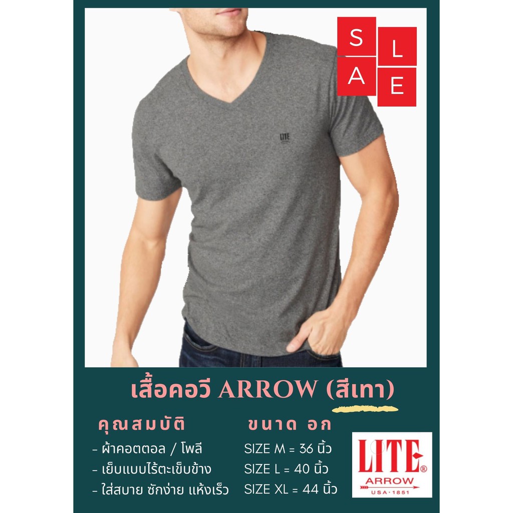 ARROW LITE เสื้อยืด คอวี ไร้ตะเข็บ สีเทา