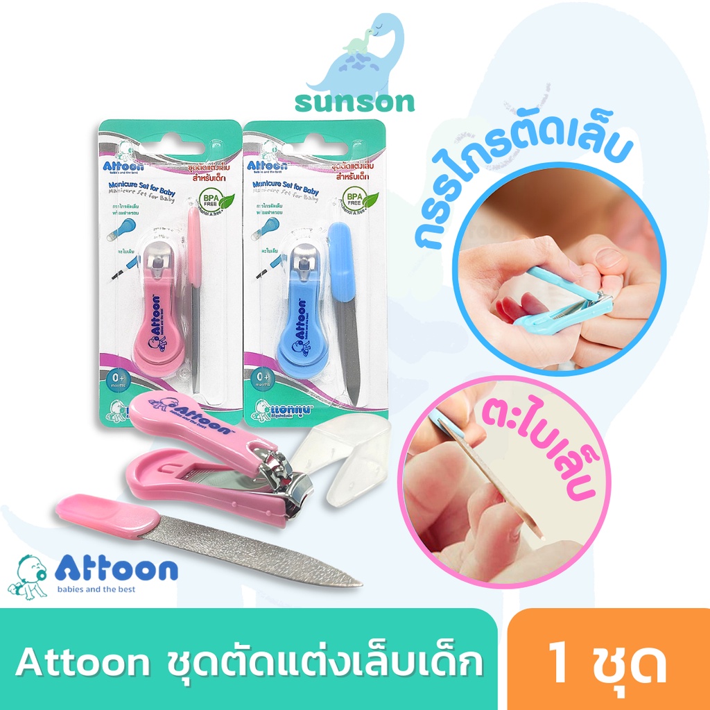 Attoon กรรไกรตัดเล็บเด็ก ชุดกรรไกรตัด เล็บเด็ก (แอทตูน) ชุดดูแลเล็บเด็ก กรรไกรตัดเล็บ ตะไบเล็บ ชุดกรรไกรสำหรับเด็กแบบพกพา